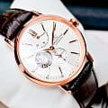 Эти часы комплектуются кожаным ремешком с раскладной застежкойРаскладная застёжкаТакой тип застёжки используется только на браслетах из металла. Она никогда не раскрывается полностью, происходит разделение на 2 и более частей. Раскладывающая застёжка снизит вероятность потери часов к минимуму., которая обеспечивает комфортное и безопасное ношение.