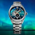 Механизм часов включает в себя 24 камня, а частота колебаний составляет 21 600 полуколебаний в час. Модель оснащена ретроградным указателем запаса хода, который может достигать до 50 часов. Функция stop-second позволяет точно настраивать время, останавливая секундную стрелку при вытягивании заводной головки. Дополнительно предусмотрена возможность ручного завода, что особенно полезно в случаях продолжительного простоя.Секундная стрелка вынесена на отдельный маленький циферблат, улучшая читаемость показаний и подчеркивая уникальный дизайн.