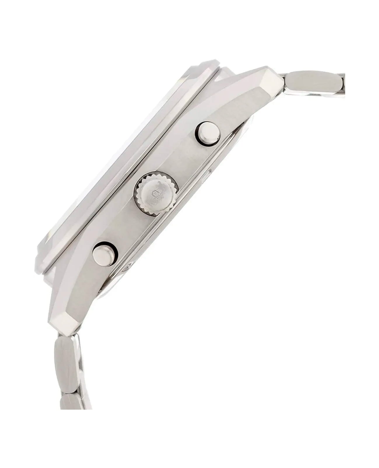 Браслет выполнен из нержавеющей стали и оснащен раскладной застежкойРаскладная застёжкаТакой тип застёжки используется только на браслетах из металла. Она никогда не раскрывается полностью, происходит разделение на 2 и более частей. Раскладывающая застёжка снизит вероятность потери часов к минимуму., которая обеспечивает удобство и надежность при ношении.