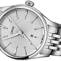 Oris 01 561 7724 4051-07 8 17 79 Artelier – это элегантные часы, сочетающие в себе классический дизайн и современную функциональность. Корпус из нержавеющей стали диаметром 33 мм идеально подходит для тех, кто ценит утонченность и стиль. Сапфировое стеклоСапфировое стеклоПрочный и надёжный материал из кристалла сапфира синтетического происхождения, характеризующийся особой твёрдостью и устойчивостью к царапинам и повреждениям. с антибликовым покрытием защищает циферблат от царапин и обеспечивает отличную читаемость при любом освещении. Стальной браслет на застёжке-бабочке с кнопкамиЗастёжка "бабочка"Такой вид застёжки дополняется предохранителями, помогающими избежать случайного раскрытия браслета. Обладают изящным исполнением. идеально дополняет дизайн часов, обеспечивая комфортное ношение. Часы оснащены центральной секундной стрелкой и окошком даты в положении «6 часов», что делает их функциональными для повседневного использования. Часы обладают водонепроницаемостью в 5 бар (50 метров). Каждая из этих функций прекрасно отображается на потрясающем циферблате, украшенном накладными индексами, гладкими стрелками из нержавеющей стали с бриллиантами, установленными в маркерах, и легендарным логотипом Oris.