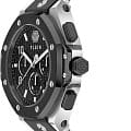Современный стиль и безупречное исполнение сливаются в каждой детали этих брендовых часов, которые каждую секунду будут напоминать вам о ценности времени. Мужские часы-хронографХронографФункция позволяет измерять отрезки времени с особой точностью: часы, минуты, секунды. Верным признаком хронографа является наличие на циферблате 3 дополнительных окошек-счётчиков. с японским кварцевым механизмом. Круглый стальной корпус украшен знаковыми винтами. Метки в виде штрихов. Минеральное стеклоМинеральное стеклоМинеральное стекло представляет собой искусственно выращенный минерал кварца. Такое стекло отличается особой устойчивостью к повреждениям и царапинам. Уступает по некоторым качествам сапфировому стеклу. устойчивое к мелким механическим повреждениям. Фирменная дизайнерская упаковка. БезельБезельВнешний ободок, закрепляющий стекло. В спортивных часах так называется поворотное кольцо с делениями на циферблате, выполняет роль таймера – замеряет отрезки времени на шкале. Неподвижный безель – элемент декора. Однонаправленно вращающийся безель на дайверских часах позволяет фиксировать моменты погружения и выныривания на поверхность. с IP-покрытиемIP-покрытиеМетод ионного напыления. Демонстрирует повышенную устойчивость к истиранию, окислению и химическим веществам. Под воздействием высокого давления и температуры около 1500°C молекулы металла надёжно соединяются с частицами корпуса часов.. Стрелки и метки с люминесцентным покрытиемЛюминесцентное покрытиеПозволяет считывать показания времени в темноте. Производители наносят на стрелки, часовые индексы, безель или поверхность циферблата светонакопительный состав, дающий холодное свечение.. Стальной браслет с частичным IP-покрытиемIP-покрытиеМетод ионного напыления. Демонстрирует повышенную устойчивость к истиранию, окислению и химическим веществам. Под воздействием высокого давления и температуры около 1500°C молекулы металла надёжно соединяются с частицами корпуса часов. на раскладной застёжкеРаскладная застёжкаТакой тип застёжки используется только на браслетах из металла. Она никогда не раскрывается полностью, происходит разделение на 2 и более частей. Раскладывающая застёжка снизит вероятность потери часов к минимуму.. Окошко даты находится в положении между 4 и 5 часов.