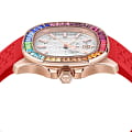 Philipp Plein THE $PECTRE LADY PWTAA1024 - дерзкое заявление любви к роскоши и бунтарскому стилю. Диаметр корпуса из прочной нержавеющей стали с PVD-покрытиемPVDУльтратонкое покрытие наносится в технике вакуумного напыления, сочетает в себе нитрид титана особой прочности со слоем золота или оксида хрома. Несёт в себе декоративную или защитную функцию. равен 38 мм. Силиконовый ремешок на стандартной застёжке обеспечивает надёжную фиксацию и комфортное ношение. Минеральное стеклоМинеральное стеклоМинеральное стекло представляет собой искусственно выращенный минерал кварца. Такое стекло отличается особой устойчивостью к повреждениям и царапинам. Уступает по некоторым качествам сапфировому стеклу. защищает циферблат от царапин. Люминесцентное покрытиеЛюминесцентное покрытиеПозволяет считывать показания времени в темноте. Производители наносят на стрелки, часовые индексы, безель или поверхность циферблата светонакопительный состав, дающий холодное свечение. стрелок и меток позволит следить за временем даже в полной темноте. БезельБезельВнешний ободок, закрепляющий стекло. В спортивных часах так называется поворотное кольцо с делениями на циферблате, выполняет роль таймера – замеряет отрезки времени на шкале. Неподвижный безель – элемент декора. Однонаправленно вращающийся безель на дайверских часах позволяет фиксировать моменты погружения и выныривания на поверхность. инкрустирован кристаллами Preciosa. Влагозащита: 50 метров, позволит защитить корпус от случайных брызг или капель дождя. Идеальный аксессуар для тех, кто ценит индивидуальность и не боится выделяться из толпы.