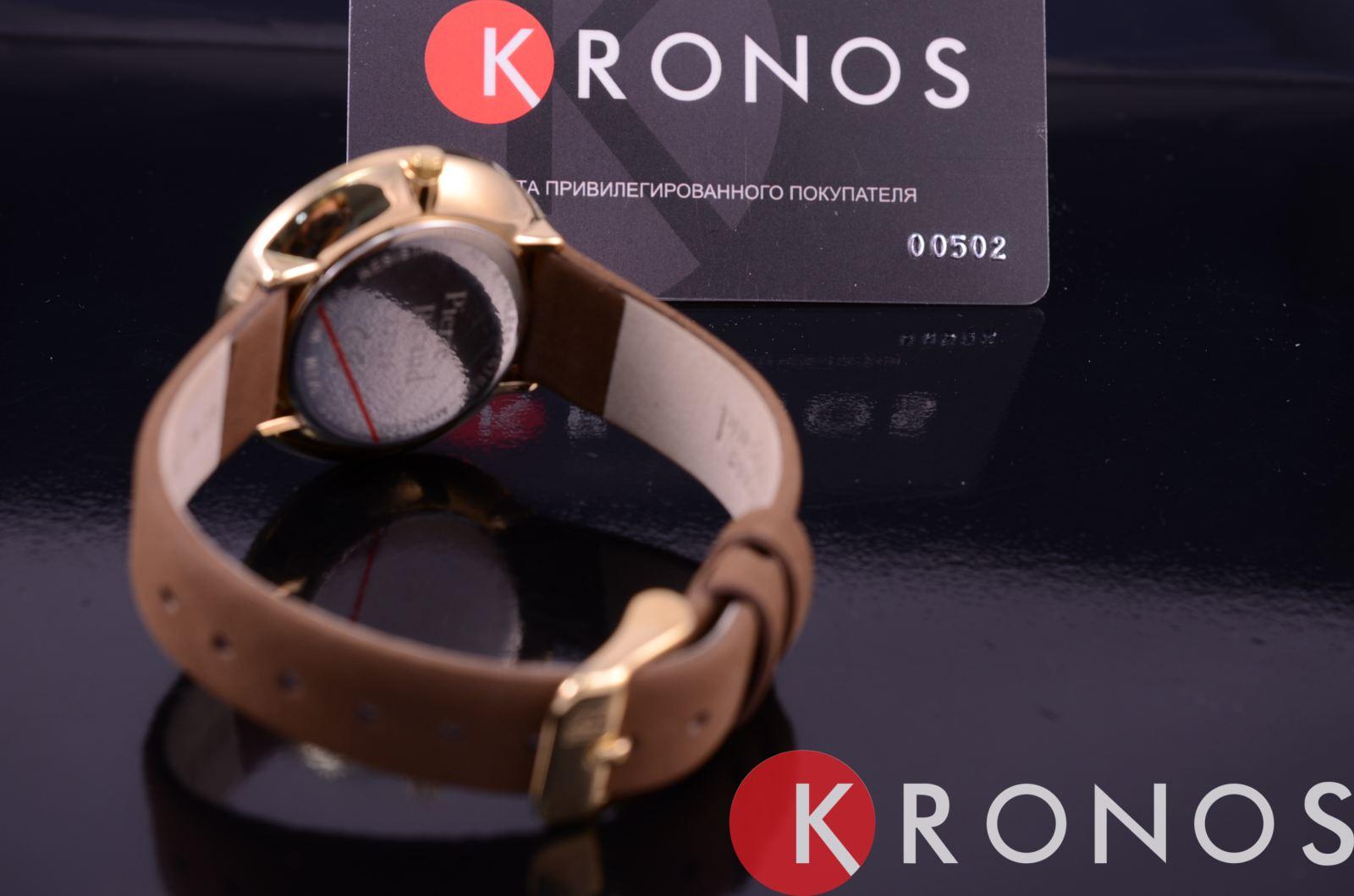 Элегантные наручные кварцевые женские часы. Корпус выполнен из нержавеющей стали с PVD покрытием. Серебристый циферблат с позолоченными индексами. Ремешок выполнен из натуральной кожи коричневого цвета с классической стальной застежкой. Водонепроницаемость 30М.