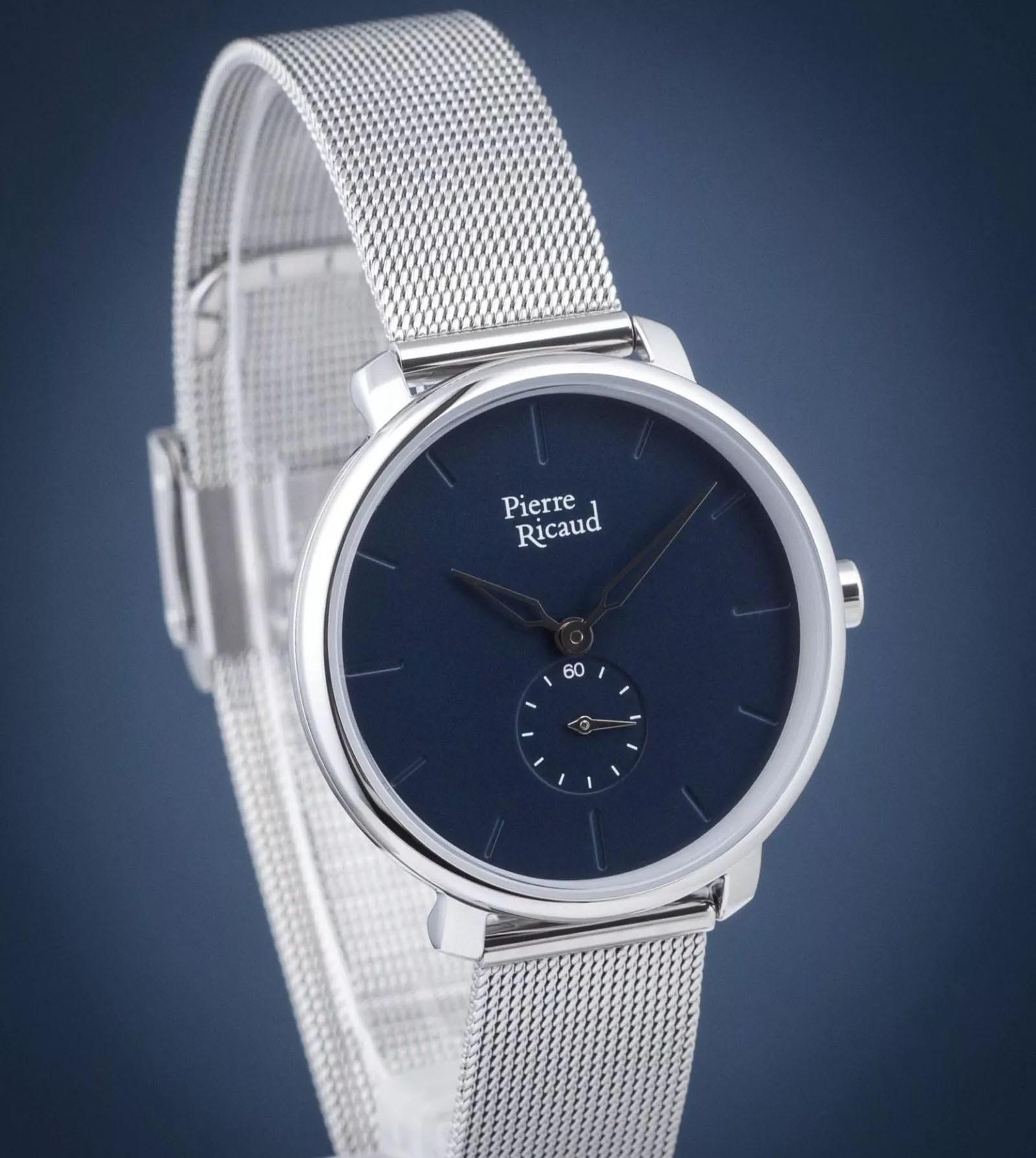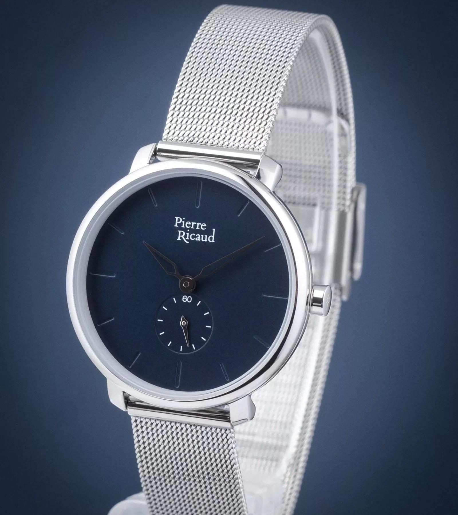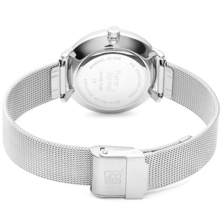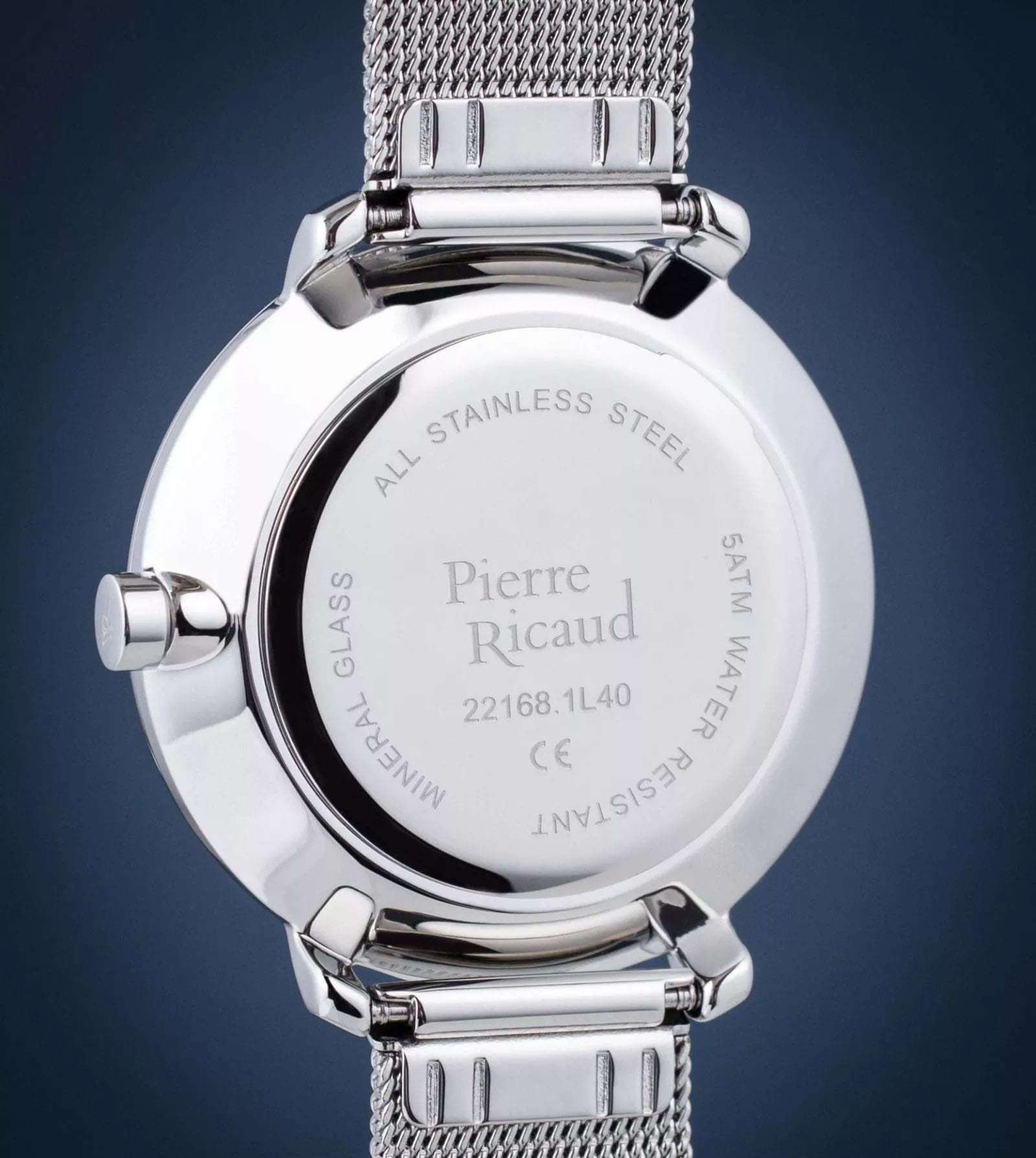 Женские кварцевые часы с минеральным стекломМинеральное стеклоМинеральное стекло представляет собой искусственно выращенный минерал кварца. Такое стекло отличается особой устойчивостью к повреждениям и царапинам. Уступает по некоторым качествам сапфировому стеклу. Pierre Ricaud P22168.5115Q, кварцевый механизм с высокой точностью. Класс водозащиты: 50 метров, позволит защитить корпус от случайных брызг или капель дождя. Корпус часов изготовлен из стали. Стальной браслет на раскладной застёжкеРаскладная застёжкаТакой тип застёжки используется только на браслетах из металла. Она никогда не раскрывается полностью, происходит разделение на 2 и более частей. Раскладывающая застёжка снизит вероятность потери часов к минимуму..
