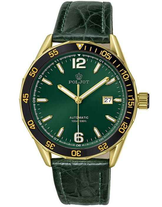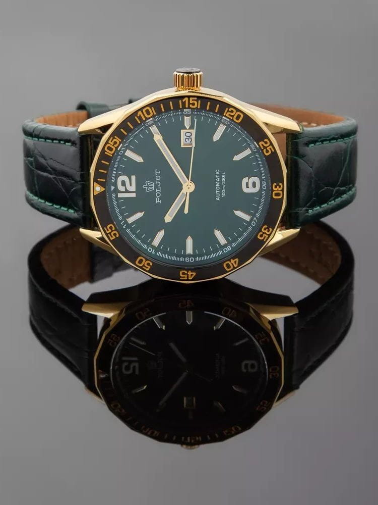 Poljot NH35A.186264 — надёжные механические мужские часы с автоподзаводом, сочетающие техническую точность и выразительный спортивный стиль. Корпус из нержавеющей стали с PVD-покрытиемPVDУльтратонкое покрытие наносится в технике вакуумного напыления, сочетает в себе нитрид титана особой прочности со слоем золота или оксида хрома. Несёт в себе декоративную или защитную функцию. подчёркивает прочность конструкции, а насыщенный циферблат с акцентами на стрелках и метках придаёт модели динамичный и современный облик. БезельБезельВнешний ободок, закрепляющий стекло. В спортивных часах так называется поворотное кольцо с делениями на циферблате, выполняет роль таймера – замеряет отрезки времени на шкале. Неподвижный безель – элемент декора. Однонаправленно вращающийся безель на дайверских часах позволяет фиксировать моменты погружения и выныривания на поверхность. с PVD-покрытиемPVDУльтратонкое покрытие наносится в технике вакуумного напыления, сочетает в себе нитрид титана особой прочности со слоем золота или оксида хрома. Несёт в себе декоративную или защитную функцию.. Внутри установлен проверенный японский механизм SEIKO NH35, обеспечивающий стабильную работу и плавный ход секундной стрелки. Окно даты добавляет функциональности, а широкие метки с люминесцентным покрытиемЛюминесцентное покрытиеПозволяет считывать показания времени в темноте. Производители наносят на стрелки, часовые индексы, безель или поверхность циферблата светонакопительный состав, дающий холодное свечение. обеспечивают отличную читаемость даже в темноте. Прочное минеральное стеклоМинеральное стеклоМинеральное стекло представляет собой искусственно выращенный минерал кварца. Такое стекло отличается особой устойчивостью к повреждениям и царапинам. Уступает по некоторым качествам сапфировому стеклу. защищает циферблат от царапин, а ремешок из натуральной кожи с контрастной прострочкой гарантирует комфорт и надёжную посадку. Poljot — часы с характером, созданные для тех, кто ценит точность, качество и спортивную уверенность в каждой детали.