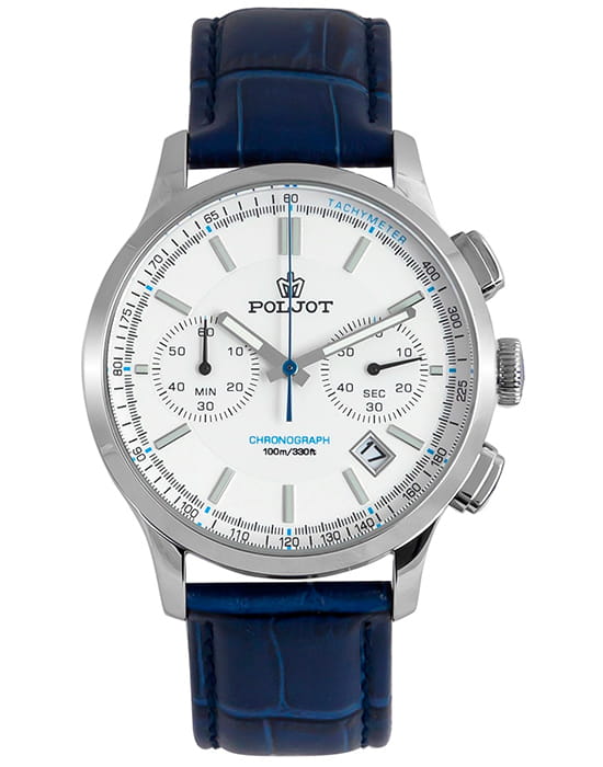 Poljot 6S21.901218 — современные мужские часы с выразительным спортивным дизайном и надёжной функциональностью. Корпус из нержавеющей стали подчёркивает прочность и уверенный характер модели, а глубокий циферблат с счётчиками хронографаХронографФункция позволяет измерять отрезки времени с особой точностью: часы, минуты, секунды. Верным признаком хронографа является наличие на циферблате 3 дополнительных окошек-счётчиков. и аккуратным окном даты придаёт часам динамичный вид. Контрастные стрелки и метки с люминесцентным покрытиемЛюминесцентное покрытиеПозволяет считывать показания времени в темноте. Производители наносят на стрелки, часовые индексы, безель или поверхность циферблата светонакопительный состав, дающий холодное свечение. обеспечивают удобство считывания информации в любое время суток, а внешняя шкала тахиметраТахиметрРазмеченная шкала, располагается на ободке или безеле часов. Тахиметр позволяет рассчитать скорость на определённом участке пути, расстояние измеряется в километрах или милях. добавляет спортивную функциональность. Прочное минеральное стеклоМинеральное стеклоМинеральное стекло представляет собой искусственно выращенный минерал кварца. Такое стекло отличается особой устойчивостью к повреждениям и царапинам. Уступает по некоторым качествам сапфировому стеклу. защищает циферблат от царапин, а ремешок из натуральной кожи гарантирует комфорт и элегантную посадку на запястье. Poljot — это гармония классики и спортивного духа, созданная для мужчин, ценящих точность, надёжность и уверенный стиль.