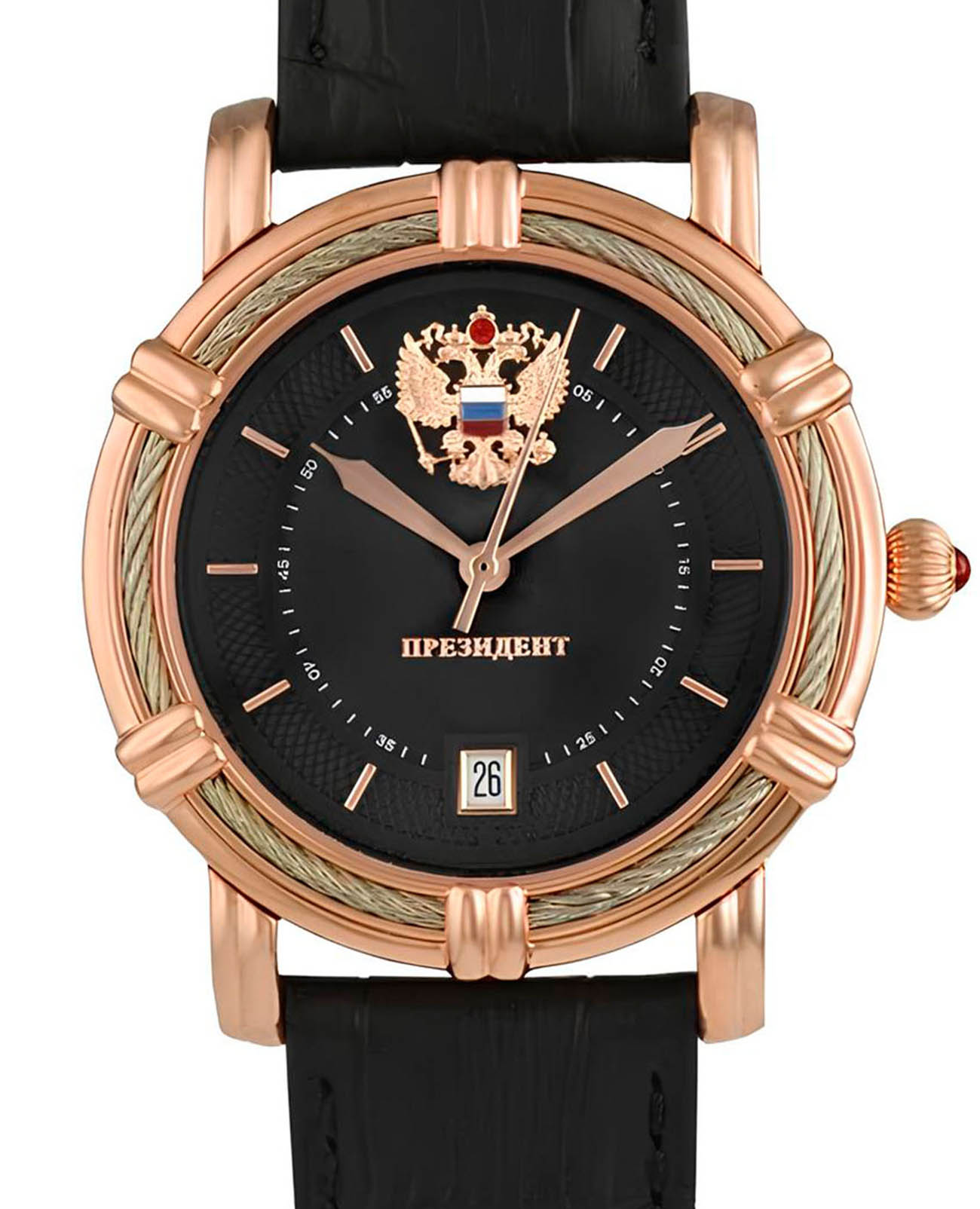 Мужские механические часы Русское Время Президент — это классический аксессуар, выполненный в стиле с символикой и рисунком. Модель оснащена аналоговым циферблатом с стрелками, что делает её универсальной для повседневного использования. Защиту механизма обеспечивает минеральное стеклоМинеральное стеклоМинеральное стекло представляет собой искусственно выращенный минерал кварца. Такое стекло отличается особой устойчивостью к повреждениям и царапинам. Уступает по некоторым качествам сапфировому стеклу., устойчивое к мелким повреждениям. Часы имеют круглую форму и изготовлены из стали, а браслет — из натуральной кожи чёрного цвета. Корпус диаметром 37 мм дополнен гербом России, что подчёркивает национальную принадлежность и стиль. Механизм калибра Miyota 8215 с автоподзаводом гарантирует надёжность и точность хода. Водонепроницаемость позволяет использовать модель в повседневных условиях — при мытье рук или под лёгким дождём. Эти часы станут универсальным аксессуаром для тех, кто ценит сочетание традиций, качества и эстетики — идеальный выбор для повседневной носки и торжественных случаев.