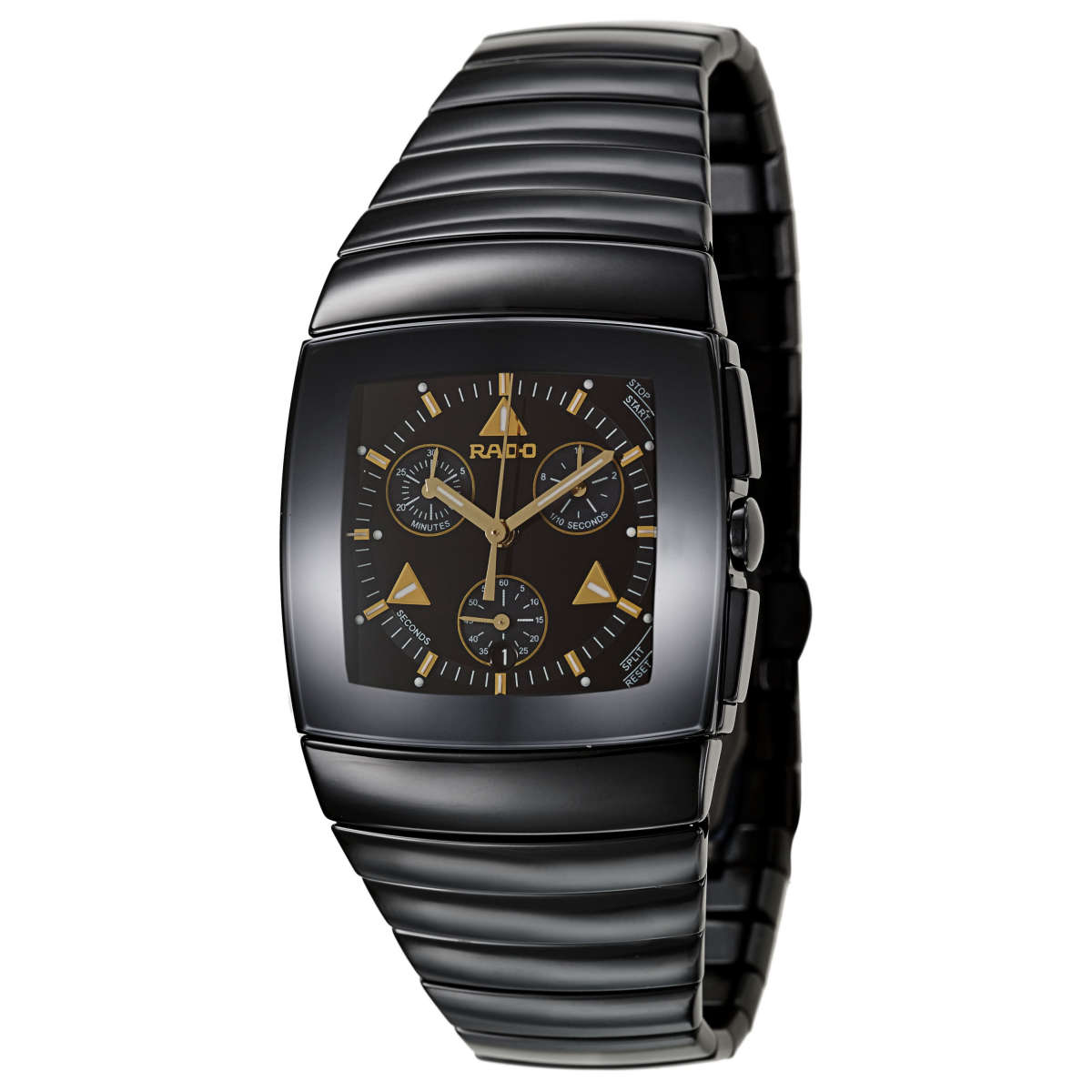 Мужские швейцарские часы Rado Sintra R13477182, кварцевый механизм с высокой точностью. Сапфировое стеклоСапфировое стеклоПрочный и надёжный материал из кристалла сапфира синтетического происхождения, характеризующийся особой твёрдостью и устойчивостью к царапинам и повреждениям. устойчивое к появлению царапин, обладающее высокой прозрачностью. Класс водозащиты: 30 метров, позволит защитить корпус от случайных брызг или капель дождя. Корпус и браслет из высокотехнологичной керамикиВысокотехнологичная керамикаИнновационный запатентованный Rado материал с гладкой или матовой поверхностью. Керамика за счёт кристаллической структуры обладает повышенной устойчивостью от возникновения царапин. Материал способен принимать температуру тела человека, обеспечивая невероятный комфорт при ношении.. Хронограф - три дополнительных циферблата, отображающих: 30 минут, 12 часов и 1/10 секунды. Стрелки и метки с люминесцентным покрытиемЛюминесцентное покрытиеПозволяет считывать показания времени в темноте. Производители наносят на стрелки, часовые индексы, безель или поверхность циферблата светонакопительный состав, дающий холодное свечение.. Отображение даты в положении "4 часа".