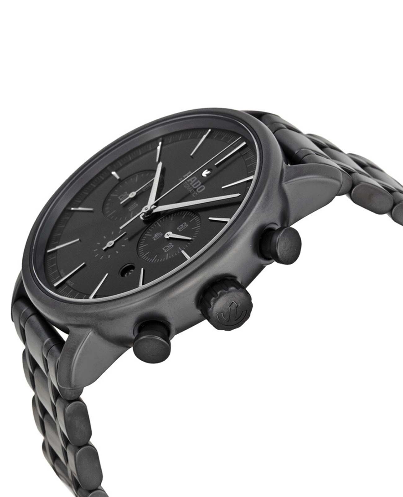 Мужские швейцарские часы-хронографХронографФункция позволяет измерять отрезки времени с особой точностью: часы, минуты, секунды. Верным признаком хронографа является наличие на циферблате 3 дополнительных окошек-счётчиков. Rado HyperChrome Automatic Chronograph R14090192. Корпус часов изготовлен из высокотехнологичной керамикиВысокотехнологичная керамикаИнновационный запатентованный Rado материал с гладкой или матовой поверхностью. Керамика за счёт кристаллической структуры обладает повышенной устойчивостью от возникновения царапин. Материал способен принимать температуру тела человека, обеспечивая невероятный комфорт при ношении.. Сапфировое стеклоСапфировое стеклоПрочный и надёжный материал из кристалла сапфира синтетического происхождения, характеризующийся особой твёрдостью и устойчивостью к царапинам и повреждениям. устойчивое к мелким механическим повреждениям. Окошко даты находится в положении между 4 и 5 часов. Класс водозащиты: 100 метров, позволит плавать, нырять и заниматься другими водными видами спорта. Браслет из высокотехнологичной керамикиВысокотехнологичная керамикаИнновационный запатентованный Rado материал с гладкой или матовой поверхностью. Керамика за счёт кристаллической структуры обладает повышенной устойчивостью от возникновения царапин. Материал способен принимать температуру тела человека, обеспечивая невероятный комфорт при ношении. на раскладной застёжкеРаскладная застёжкаТакой тип застёжки используется только на браслетах из металла. Она никогда не раскрывается полностью, происходит разделение на 2 и более частей. Раскладывающая застёжка снизит вероятность потери часов к минимуму..