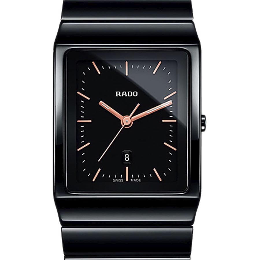 Часы воплощают собой строгость форм и элегантность. Брендовый аксессуар со стильным прямоугольным корпусом выполнен из высокотехнологичной керамикиВысокотехнологичная керамикаИнновационный запатентованный Rado материал с гладкой или матовой поверхностью. Керамика за счёт кристаллической структуры обладает повышенной устойчивостью от возникновения царапин. Материал способен принимать температуру тела человека, обеспечивая невероятный комфорт при ношении.. Материал отличается лёгкостью и не вызывает аллергии даже у чувствительной кожи. Кварцевый механизм ETA E61.111 обеспечивает высокую точность хода. Сапфировое стеклоСапфировое стеклоПрочный и надёжный материал из кристалла сапфира синтетического происхождения, характеризующийся особой твёрдостью и устойчивостью к царапинам и повреждениям. характеризуется устойчивостью к царапинам. Водозащита 50 метров. Индикация текущего числа. Габариты: 41,7 x 30 x 7,6 мм.