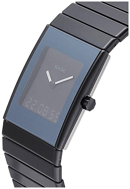 Швейцарские мужские часы c хронографомХронографФункция позволяет измерять отрезки времени с особой точностью: часы, минуты, секунды. Верным признаком хронографа является наличие на циферблате 3 дополнительных окошек-счётчиков. и с будильникомБудильникБуди́льник — часы, в заданный момент времени подающие звуковой, световой и/или в редких случаях другой сигнал. Rado Sintra R21854152. Сапфировое стеклоСапфировое стеклоПрочный и надёжный материал из кристалла сапфира синтетического происхождения, характеризующийся особой твёрдостью и устойчивостью к царапинам и повреждениям. устойчивое к мелким механическим повреждениям. Корпус часов изготовлен из высокотехнологичной керамикиВысокотехнологичная плазменная керамикаИнновационный материал, технология запатентована. Выплавление керамики осуществляется в печи при 20 000 °C, белоснежный материал под воздействием ультравысокой температуры приобретает уникальный блеск, присущий металлам.. Стрелки с люминесцентным покрытиемЛюминесцентное покрытиеПозволяет считывать показания времени в темноте. Производители наносят на стрелки, часовые индексы, безель или поверхность циферблата светонакопительный состав, дающий холодное свечение.. Класс водозащиты: 30 метров, позволит защитить корпус от случайных брызг или капель дождя. Браслет из высокотехнологичной керамикиВысокотехнологичная керамикаИнновационный запатентованный Rado материал с гладкой или матовой поверхностью. Керамика за счёт кристаллической структуры обладает повышенной устойчивостью от возникновения царапин. Материал способен принимать температуру тела человека, обеспечивая невероятный комфорт при ношении. на раскладной застёжкеРаскладная застёжкаТакой тип застёжки используется только на браслетах из металла. Она никогда не раскрывается полностью, происходит разделение на 2 и более частей. Раскладывающая застёжка снизит вероятность потери часов к минимуму..