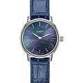 Минималистичная модель отличается компактным перламутровым циферблатом, аксессуар уместно смотрится с любым образом. Наручные часы показывают время с повышенной точностью благодаря швейцарскому кварцевому механизму ETA E63.111. Для изготовления корпуса была выбрана сталь 316L с устойчивостью к коррозии. Водонепроницаемость до 5 бар. Сапфировое стекло с антибликовой обработкой. Синий ремешок из натуральной кожи. . Диаметр корпуса: 27 мм.