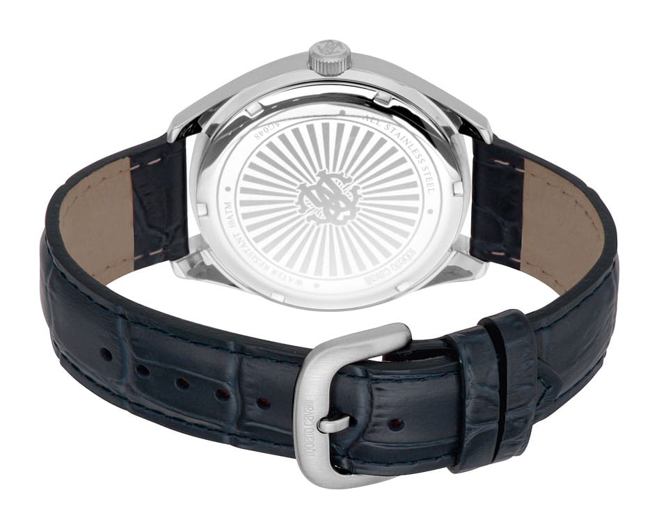 ROBERTO CAVALLI Uomo Mio RC5G048L0025 — стильные итальянские часы, которые сочетают в себе элегантность и современный функционал. Круглый корпус диаметром 42 мм выполнен из нержавеющей стали, толщина корпуса составляет 12 мм, что придает модели выразительный внешний вид и надежную защиту от внешних воздействий. Часы оснащены кварцевым механизмом, также обладают функцией отображения даты, что делает их удобными для ежедневного использования. Минеральное стеклоМинеральное стеклоМинеральное стекло представляет собой искусственно выращенный минерал кварца. Такое стекло отличается особой устойчивостью к повреждениям и царапинам. Уступает по некоторым качествам сапфировому стеклу. защищает часы от царапин. Водозащита 100 метров, позволит плавать, нырять и заниматься другими водными видами спорта. Кожаный ремешок на стандартной застёжке обеспечивает комфортное ношение. Стрелки и метки с люминесцентным покрытиемЛюминесцентное покрытиеПозволяет считывать показания времени в темноте. Производители наносят на стрелки, часовые индексы, безель или поверхность циферблата светонакопительный состав, дающий холодное свечение. обеспечивают отличную читаемость в любое время суток.