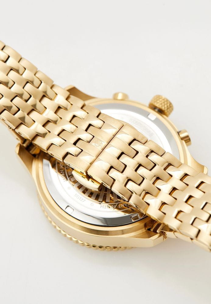 Roberto Cavalli Stile RC5G127M0075 — мужская кварцевая модель с ярко выраженным спортивным характером, сочетающая функциональность и надёжность. Корпус с PVD-покрытиемPVDУльтратонкое покрытие наносится в технике вакуумного напыления, сочетает в себе нитрид титана особой прочности со слоем золота или оксида хрома. Несёт в себе декоративную или защитную функцию. диаметром 44 мм выполнен из нержавеющей стали, сочетание матовых и полированных поверхностей придаёт часам современный вид. Защитную роль выполняет прочное минеральное стеклоМинеральное стеклоМинеральное стекло представляет собой искусственно выращенный минерал кварца. Такое стекло отличается особой устойчивостью к повреждениям и царапинам. Уступает по некоторым качествам сапфировому стеклу., устойчивое к повседневным воздействиям. Водозащита 100 м позволяет без опасений использовать модель во время плавания и активного отдыха. На циферблате реализованы функции хронографаХронографФункция позволяет измерять отрезки времени с особой точностью: часы, минуты, секунды. Верным признаком хронографа является наличие на циферблате 3 дополнительных окошек-счётчиков. и даты, благодаря чему часы сочетают спортивную эстетику и практичность. Стальной браслет с PVD-покрытиемPVDУльтратонкое покрытие наносится в технике вакуумного напыления, сочетает в себе нитрид титана особой прочности со слоем золота или оксида хрома. Несёт в себе декоративную или защитную функцию. на застёжке-бабочке с кнопкамиЗастёжка "бабочка"Такой вид застёжки дополняется предохранителями, помогающими избежать случайного раскрытия браслета. Обладают изящным исполнением. подчеркивает классический стиль, обеспечивает удобство в ношении и гармонично завершает дизайн, делая модель универсальным спутником как для повседневного образа, так и для активного досуга.