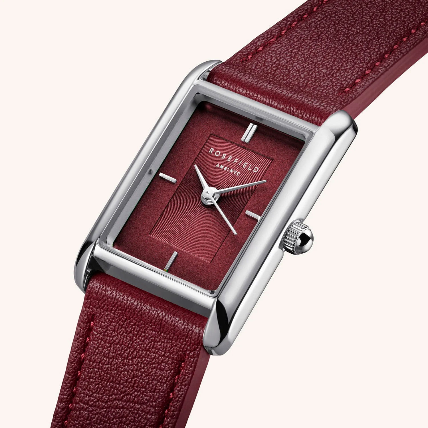 Часы Rosefield Heirloom Burgundy (модель HBBLS-H08) — это элегантный женский аксессуар, сочетающий классический дизайн и современные тенденции. Корпус прямоугольной формы размером 23,5 x 30,6 мм выполнен из латуни, что придаёт часам утончённый и современный вид. Бордовый циферблат с серебристыми часовыми метками и стрелками обеспечивает отличную читаемость. Циферблат защищён минеральным стекломМинеральное стеклоМинеральное стекло представляет собой искусственно выращенный минерал кварца. Такое стекло отличается особой устойчивостью к повреждениям и царапинам. Уступает по некоторым качествам сапфировому стеклу., устойчивым к царапинам.
