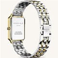 Женские кварцевые часы. Центральные часовая, минутная и секундная стрелки. Серебристый циферблат. Восьмиугольный корпус выполнен из металла с IP покрытием цвета желтого золота. Размер корпуса составляет 19,5 х 24 мм, толщина 7 мм. Стальной браслет с частичным покрытием, браслетная застежка. Прочное минеральное стекло устойчивое к мелким механическим повреждениям. Водостойкость WR 30 (брызги).