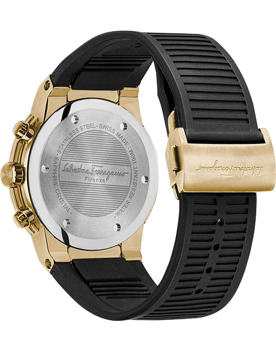 Женские швейцарские часы с хронографом Salvatore Ferragamo SFIJ00518, кварцевый механизм с высокой точностью. Сапфировое стекло устойчивое к появлению царапин, обладающее высокой прозрачностью. Класс водозащиты: 100 метров, позволит плавать, нырять и заниматься другими водными видами спорта. Корпус часов изготовлен из стали, позолоченного цвета.