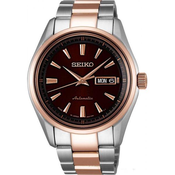 Успешные люди, желающие идти в ногу со временем, выбирают инновационные и надежные часы марки Seiko. Механические часы с автоподзаводом; Корпус - Нержавеющая сталь, частичное PVD покрытие; Водозащита - 100 м. (WR 100); Стекло - Сапфировое