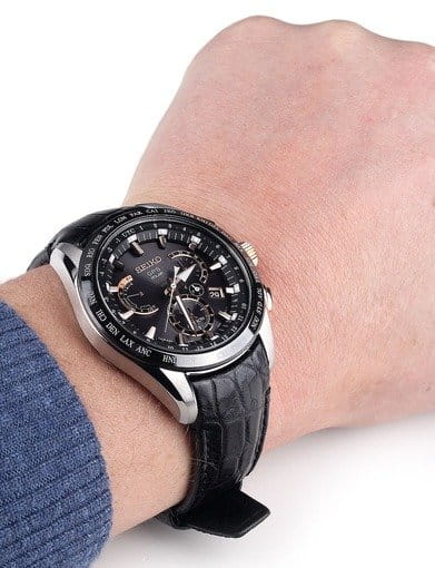 Часы со встроенным GPS-приемником определяют часовой пояс, дату и точное время. Питание от солнечной энергии, индикатор уровня зарядки батареи. Защищены от магнитных полей (до 4800 А/м). Функция сохранения энергии. Запас хода при включенной функции сохранения энергии до 2 лет. Ручная и автоматическая корректировка времени и часового пояса. Установка летнего времени. Функции приема GPS-сигнала: режим ''В полете'', показ количества спутников, показ результата последнего приема, проверка установленного часового пояса. Мировое время - часы распознают все 40 часовых поясов. Второй часовой пояс с индикацией AM/PM. Ретроградный индикатор отображает: состояние зарядки батареи, режим ''В полете'', включение/отключение летнего времени, способ приема GPS-сигнала и день недели. Керамический безель. Заводная головка с защитой. Завинчивающаяся задняя крышка. Ремешок с раскладывающейся застежкой. Застежка с системой блокировки.