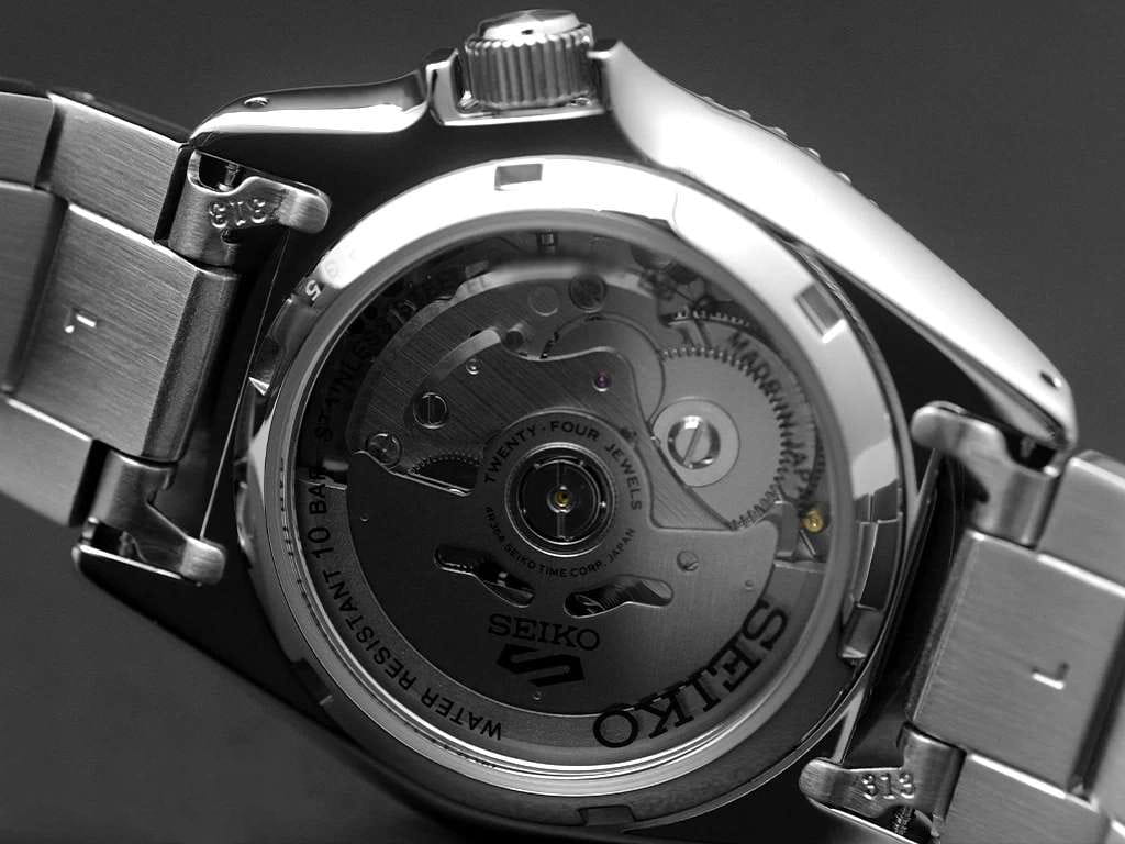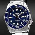 Мужские механические часы с автоподзаводом Seiko — это надёжный и функциональный аксессуар. Корпус размером 38 мм и толщиной 12 мм выполнен из нержавеющей стали. БезельБезельВнешний ободок, закрепляющий стекло. В спортивных часах так называется поворотное кольцо с делениями на циферблате, выполняет роль таймера – замеряет отрезки времени на шкале. Неподвижный безель – элемент декора. Однонаправленно вращающийся безель на дайверских часах позволяет фиксировать моменты погружения и выныривания на поверхность. с PVD-покрытиемPVDУльтратонкое покрытие наносится в технике вакуумного напыления, сочетает в себе нитрид титана особой прочности со слоем золота или оксида хрома. Несёт в себе декоративную или защитную функцию. однонаправленно вращающийся. Циферблат синего цвета оформлен индексами и стрелками. Окошки даты и дня недели расположены в положении 3 часов. Стрелки и метки с люминесцентным покрытиемЛюминесцентное покрытиеПозволяет считывать показания времени в темноте. Производители наносят на стрелки, часовые индексы, безель или поверхность циферблата светонакопительный состав, дающий холодное свечение. LumiBrite, обеспечивающим хорошую читаемость в темноте. Циферблат защищён прочным закалённым минеральным стеклом Hardlex. Механизм — автоматический калибр 4R36 (24 камня, частота 21 600 полуколебаний в час) с функцией остановки секундной стрелки и запасом хода до 41 часа. Заводная головка с защитой смещена в положение 4 часов. Прозрачная задняя крышка позволяет наблюдать за работой механизма. Часы оснащены стальным браслетом на тройной раскладной застёжкеРаскладная застёжкаТакой тип застёжки используется только на браслетах из металла. Она никогда не раскрывается полностью, происходит разделение на 2 и более частей. Раскладывающая застёжка снизит вероятность потери часов к минимуму. с фиксатором. Водонепроницаемость 100 м позволяет использовать часы для плавания и повседневного ношения. Идеальный выбор для тех, кто ценит японское качество и точность.