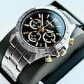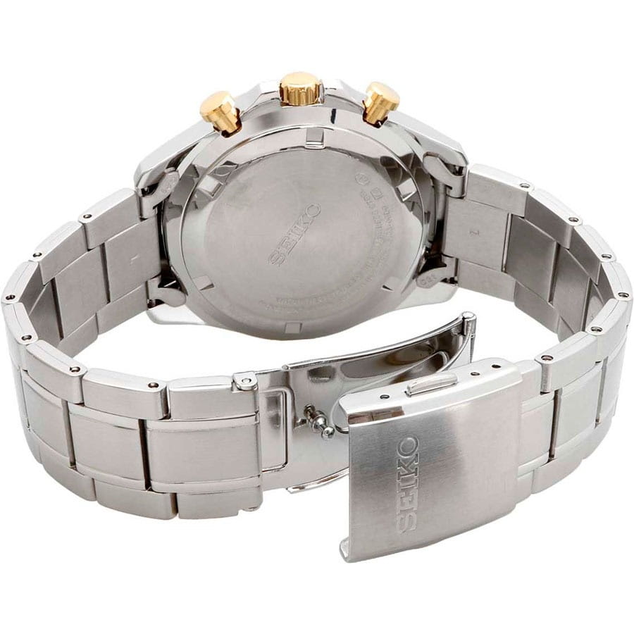Мужские кварцевые часы Seiko SBTR015 из коллекции Spirit — это сочетание точности, функциональности и современного дизайна. Часы оснащены японским механизмом калибра 8T63 с функцией хронографаХронографФункция позволяет измерять отрезки времени с особой точностью: часы, минуты, секунды. Верным признаком хронографа является наличие на циферблате 3 дополнительных окошек-счётчиков., включающей секундомер с точностью 1/5 секунды и временем измерения до 1 часа, отображаемый центральной стрелкой. Также реализована функция тахиметраТахиметрРазмеченная шкала, располагается на ободке или безеле часов. Тахиметр позволяет рассчитать скорость на определённом участке пути, расстояние измеряется в километрах или милях.. Центральные часовая и минутная стрелки дополнены вынесенной секундной стрелкой на отдельном циферблате, окошко даты расположено между отметками 4 и 5 часов. Циферблат чёрного цвета оформлен штриховыми метками, стрелки и метки покрыты люминесцентным покрытиемЛюминесцентное покрытиеПозволяет считывать показания времени в темноте. Производители наносят на стрелки, часовые индексы, безель или поверхность циферблата светонакопительный состав, дающий холодное свечение. LumiBrite, обеспечивающим хорошую читаемость в темноте. Корпус выполнен из нержавеющей стали и защищён прочным минеральным стеклом Hardlex, устойчивым к царапинам. Браслет из нержавеющей стали фиксируется на раскладной застёжкеРаскладная застёжкаТакой тип застёжки используется только на браслетах из металла. Она никогда не раскрывается полностью, происходит разделение на 2 и более частей. Раскладывающая застёжка снизит вероятность потери часов к минимуму.. Водонепроницаемость 100 м позволяет использовать часы для плавания, ныряния и других водных видов спорта. Модель подходит как для повседневного, так и для делового образа.