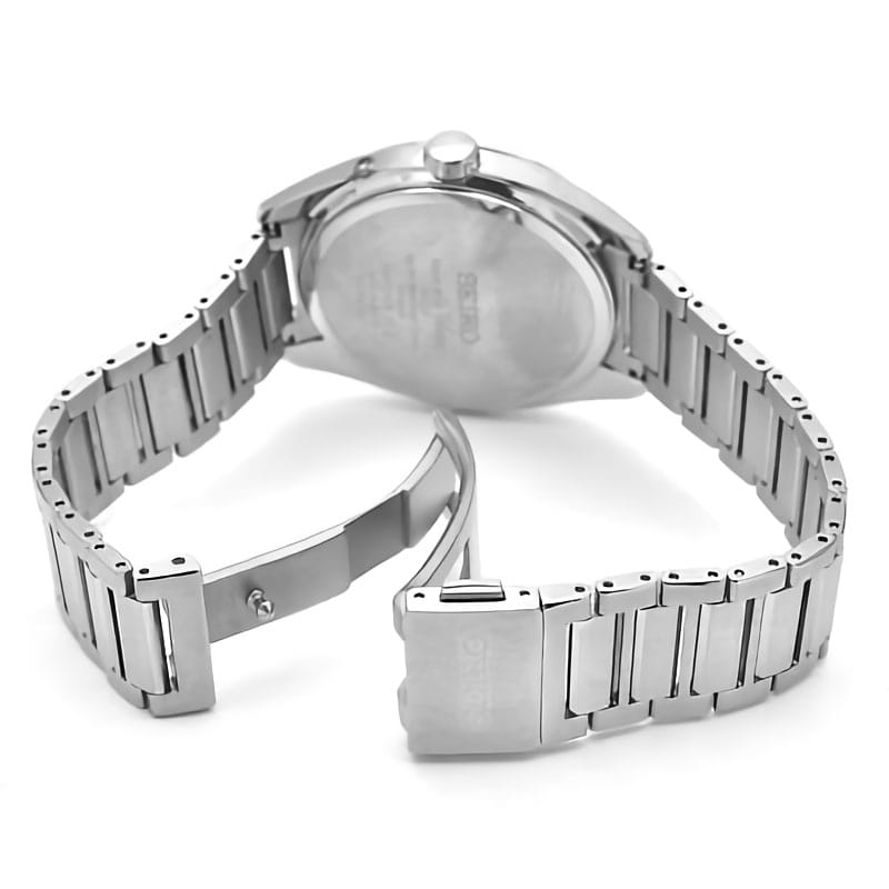Мужские кварцевые часы Seiko — это высокотехнологичный аксессуар с солнечным питанием и радиосинхронизацией. Корпус размером 39 мм и толщиной 9,6 мм выполнен из гипоаллергенного титана. Циферблат чёрного цвета оформлен индексами и стрелками. Окошко даты расположено в положении 3 часов. Циферблат защищён выпуклым сапфировым стекломСапфировое стеклоПрочный и надёжный материал из кристалла сапфира синтетического происхождения, характеризующийся особой твёрдостью и устойчивостью к царапинам и повреждениям. с антибликовым покрытиемАнтибликовое покрытиеСлой оксида металла в 0,13-0,3 микрон, благодаря которому стекло часов не бликует и не отражает свет. Антибликовое покрытие уменьшает отражение света в 10 раз, обеспечивая отличную читаемость показателей циферблата. для максимальной прозрачности. Механизм — кварцевый с технологией Tough SolarTough SolarТехнология основана на подзарядке аккумулятора от источника солнечного света, специальная панель улавливает солнечные лучи и преобразует их в энергию для работы часов. Достаточно пары минут нахождения на солнце для функционирования часов в течении суток., обеспечивающей работу до 9 месяцев в обычном режиме и до 2 лет в режиме энергосбережения. Часы поддерживают автоматическую радиокоррекцию времени, имеют функцию вечного календаряВечный календарьКлассическое часовое усложнение, представляющее собой календарь, рассчитанный на несколько лет вперёд (стандартно – до 2099 года). Определяет текущую дату, день недели, месяц. (до 2100 года) и устойчивы к магнитным полям. Часы оснащены титановым браслетом с раскладной застёжкойРаскладная застёжкаТакой тип застёжки используется только на браслетах из металла. Она никогда не раскрывается полностью, происходит разделение на 2 и более частей. Раскладывающая застёжка снизит вероятность потери часов к минимуму.. Водонепроницаемость 100 м позволяет использовать часы для плавания и повседневного ношения. Идеальный выбор для тех, кто ценит точность, лёгкость и передовые технологии.