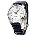 Мужские кварцевые часы Seiko — это высокотехнологичный аксессуар с солнечным питанием и радиосинхронизацией. Корпус размером 39 мм и толщиной 9,6 мм выполнен из гипоаллергенного титана. Циферблат белого цвета оформлен индексами и стрелками. Окошко даты расположено в положении 3 часов. Циферблат защищён сапфировым стекломСапфировое стеклоПрочный и надёжный материал из кристалла сапфира синтетического происхождения, характеризующийся особой твёрдостью и устойчивостью к царапинам и повреждениям. с антибликовым покрытиемАнтибликовое покрытиеСлой оксида металла в 0,13-0,3 микрон, благодаря которому стекло часов не бликует и не отражает свет. Антибликовое покрытие уменьшает отражение света в 10 раз, обеспечивая отличную читаемость показателей циферблата. для максимальной прозрачности. Механизм — кварцевый с технологией Tough SolarTough SolarТехнология основана на подзарядке аккумулятора от источника солнечного света, специальная панель улавливает солнечные лучи и преобразует их в энергию для работы часов. Достаточно пары минут нахождения на солнце для функционирования часов в течении суток., обеспечивающей работу до 9 месяцев в обычном режиме и до 2 лет в режиме энергосбережения. Часы поддерживают автоматическую радиокоррекцию времени, имеют функцию вечного календаряВечный календарьКлассическое часовое усложнение, представляющее собой календарь, рассчитанный на несколько лет вперёд (стандартно – до 2099 года). Определяет текущую дату, день недели, месяц. (до 2100 года) и устойчивы к магнитным полям. Часы оснащены черным кожаным ремешком с раскладной застёжкойРаскладная застёжкаТакой тип застёжки используется только на браслетах из металла. Она никогда не раскрывается полностью, происходит разделение на 2 и более частей. Раскладывающая застёжка снизит вероятность потери часов к минимуму.. Водонепроницаемость 100 м позволяет использовать часы для плавания и повседневного ношения. Идеальный выбор для тех, кто ценит точность, лёгкость и передовые технологии.