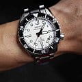 Мужские японские механические часы с автоподзаводом Seiko Prospex SLA077J1 готовы покорить сердца истинных ценителей качественных аксессуаров. Оснащенные сапфировым стекломСапфировое стеклоПрочный и надёжный материал из кристалла сапфира синтетического происхождения, характеризующийся особой твёрдостью и устойчивостью к царапинам и повреждениям., они обеспечивают надежную защиту циферблата от царапин и других повреждений, что делает их отличным выбором для активного использования. Дизайн часов включает поворотный безельБезельВнешний ободок, закрепляющий стекло. В спортивных часах так называется поворотное кольцо с делениями на циферблате, выполняет роль таймера – замеряет отрезки времени на шкале. Неподвижный безель – элемент декора. Однонаправленно вращающийся безель на дайверских часах позволяет фиксировать моменты погружения и выныривания на поверхность., выполненный из нержавеющей стали, который добавляет функциональности и элегантности. Корпус и браслет изготовлены из высококачественной стали, что гарантирует долговечность и комфорт, а также делает эти часы подходящими как для повседневного ношения, так и для особых случаев. Удобное окошко даты, расположенное в положении 3 часа, придаёт дополнительную практичность в использовании. Стрелки и метки времени имеют люминесцентное покрытиеЛюминесцентное покрытиеПозволяет считывать показания времени в темноте. Производители наносят на стрелки, часовые индексы, безель или поверхность циферблата светонакопительный состав, дающий холодное свечение., обеспечивая отличную видимость в темноте и позволяя легко считывать время в любых условиях освещения. С классом водозащиты в 300 метров, Seiko Prospex SLA077J1 идеально подходят для плавания, ныряния и активных водных видов спорта. Стальной браслет на раскладной застёжкеРаскладная застёжкаТакой тип застёжки используется только на браслетах из металла. Она никогда не раскрывается полностью, происходит разделение на 2 и более частей. Раскладывающая застёжка снизит вероятность потери часов к минимуму. обеспечивает надежную фиксацию и комфорт при ношении. Эти часы — возможность объединить стиль и функциональность, что делает их отличным выбором как для любителей приключений, так и для ценителей утонченного дизайна.