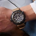 Японские мужские часы Seiko SNJ029P1 из коллекции Prospex стали перевоплощением легендарного хронографаХронографФункция позволяет измерять отрезки времени с особой точностью: часы, минуты, секунды. Верным признаком хронографа является наличие на циферблате 3 дополнительных окошек-счётчиков. 80-х годов, который предпочитал носить актёр Арнольд Шварценеггер. Наручные часы отражают брутальный, спортивный характер. Внешний облик позаимствован у предшественника Seiko H558-5009, выполненный в дайверском стиле. Аксессуар работает за счёт японского кварцевого калибра Seiko H851, получающего энергию за счёт источников света – реализация технологии . При полностью заряженном элементе питания модель проработает 6 месяцев без необходимости подзарядки. Противоударный корпусУдаропрочный корпусМеханизм заключён в корпус, выполненный из современных материалов, устойчивых к ударам, механическим повреждениям и падению с высоты: инновационный пластик, карбон, нержавеющая сталь, титан. имеет двойную конструкцию, где нержавеющая сталь 316L дополнительно защищена полимерными протекторами. Циферблат оснащён минеральным закаленным стеклом Hardlex, прочным и устойчивым к царапинам. Сохраняется водостойкость до 200 метров в соответствии со стандартом ISO 6425. Дисплей подсвечивается светодиодомСветодиодная подсветкаСветодиодная или LED-подсветка обеспечивает появление яркого холодного свечения за счёт LED-элементов - маленьких лампочек. Они потребляют минимальное количество энергии, чаще всего можно встретить 1 светодиод, в нижней части циферблата., стрелки и индексы имеют люминесцентную подсветкуЛюминесцентное покрытиеПозволяет считывать показания времени в темноте. Производители наносят на стрелки, часовые индексы, безель или поверхность циферблата светонакопительный состав, дающий холодное свечение.. Функции: будильник, секундомер, вечный календарьВечный календарьКлассическое часовое усложнение, представляющее собой календарь, рассчитанный на несколько лет вперёд (стандартно – до 2099 года). Определяет текущую дату, день недели, месяц.. Диаметр корпуса: 47,8 мм.