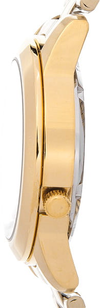 Мужские механические часы с автоподзаводом Seiko SNKE56K1 из коллекции Seiko 5 Regular — японская надёжность с золотистым акцентом. Корпус из стали с PVD-покрытиемPVDУльтратонкое покрытие наносится в технике вакуумного напыления, сочетает в себе нитрид титана особой прочности со слоем золота или оксида хрома. Несёт в себе декоративную или защитную функцию., диаметром 38 мм. Циферблат — золотистый с крупными индексами и стрелками, окошками дня недели и даты. Стекло — минеральноеМинеральное стеклоМинеральное стекло представляет собой искусственно выращенный минерал кварца. Такое стекло отличается особой устойчивостью к повреждениям и царапинам. Уступает по некоторым качествам сапфировому стеклу. Hardlex повышенной прочности. Механизм — японский калибр 7S26 (21 камень, запас хода 40 ч), антимагнитный. Задняя крышка — прозрачная. Браслет — стальной с PVD-покрытиемPVDУльтратонкое покрытие наносится в технике вакуумного напыления, сочетает в себе нитрид титана особой прочности со слоем золота или оксида хрома. Несёт в себе декоративную или защитную функцию. на раскладной застёжкеРаскладная застёжкаТакой тип застёжки используется только на браслетах из металла. Она никогда не раскрывается полностью, происходит разделение на 2 и более частей. Раскладывающая застёжка снизит вероятность потери часов к минимуму. с системой блокировки. Водонепроницаемость 30 м. Идеальный выбор для тех, кто ценит японское качество и классический повседневный стиль.