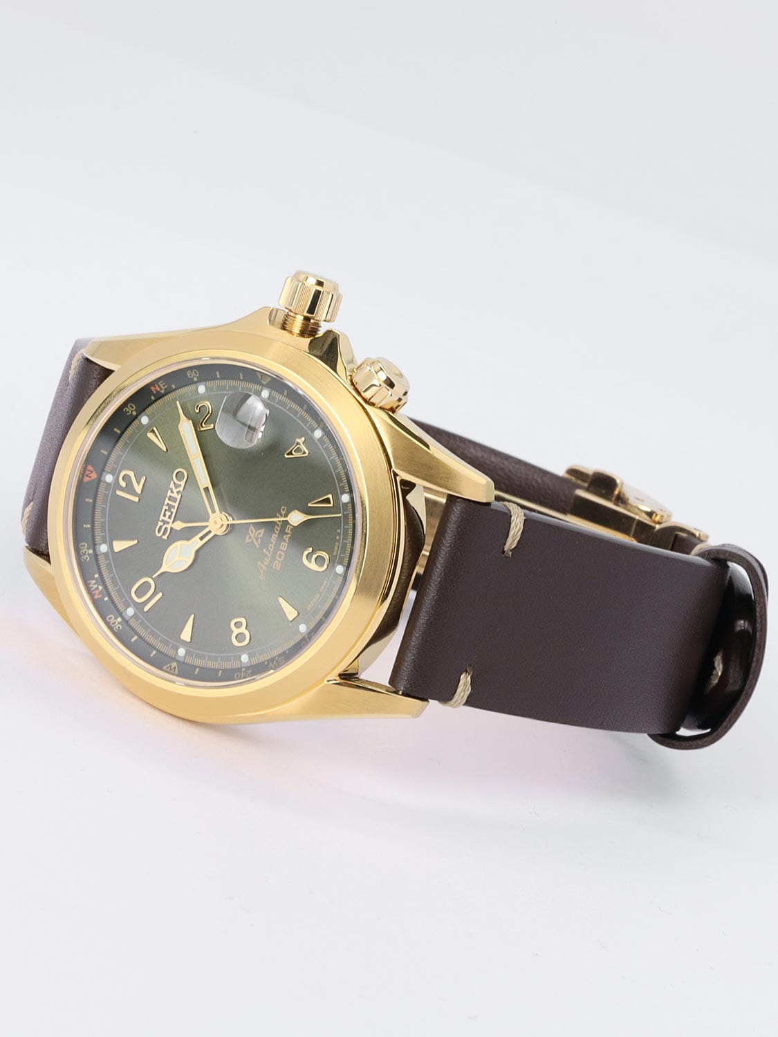 Мужские механические часы с автоподзаводом Seiko — это элегантная модель из серии Prospex, воплощающая японское мастерство и точность. Корпус диаметром 39,5 мм и толщиной 13 мм выполнен из стали с PVD-покрытиемPVDУльтратонкое покрытие наносится в технике вакуумного напыления, сочетает в себе нитрид титана особой прочности со слоем золота или оксида хрома. Несёт в себе декоративную или защитную функцию.. Циферблат зелёного цвета оформлен по технологии Sunray («солнечные лучи»), дополнен штрихами и арабскими цифрами. Окошко даты расположено в положении 3 часов и оснащено увеличительным стеклом. Стрелки и метки с люминесцентным покрытиемЛюминесцентное покрытиеПозволяет считывать показания времени в темноте. Производители наносят на стрелки, часовые индексы, безель или поверхность циферблата светонакопительный состав, дающий холодное свечение. LumiBrite, обеспечивающим хорошую читаемость в темноте. Циферблат защищён сапфировым стекломСапфировое стеклоПрочный и надёжный материал из кристалла сапфира синтетического происхождения, характеризующийся особой твёрдостью и устойчивостью к царапинам и повреждениям. с антибликовым покрытиемАнтибликовое покрытиеСлой оксида металла в 0,13-0,3 микрон, благодаря которому стекло часов не бликует и не отражает свет. Антибликовое покрытие уменьшает отражение света в 10 раз, обеспечивая отличную читаемость показателей циферблата. на внутренней поверхности. Механизм — автоматический калибр 6R35 (24 камня, частота 21 600 полуколебаний в час) с возможностью ручного завода и функцией , запас хода до 70 часов. Внутренний безельБезельВнешний ободок, закрепляющий стекло. В спортивных часах так называется поворотное кольцо с делениями на циферблате, выполняет роль таймера – замеряет отрезки времени на шкале. Неподвижный безель – элемент декора. Однонаправленно вращающийся безель на дайверских часах позволяет фиксировать моменты погружения и выныривания на поверхность. со шкалой компаса вращается с помощью головки на позиции 4 часов. Завинчивающаяся заводная головка с защитой и прозрачная задняя крышка повышают надёжность. Часы оснащены кожаным ремешком с тройной раскладной застёжкойРаскладная застёжкаТакой тип застёжки используется только на браслетах из металла. Она никогда не раскрывается полностью, происходит разделение на 2 и более частей. Раскладывающая застёжка снизит вероятность потери часов к минимуму.. Водонепроницаемость 200 м позволяет использовать часы для плавания и повседневного ношения. Идеальный выбор для тех, кто ценит стиль, функциональность и наследие.
