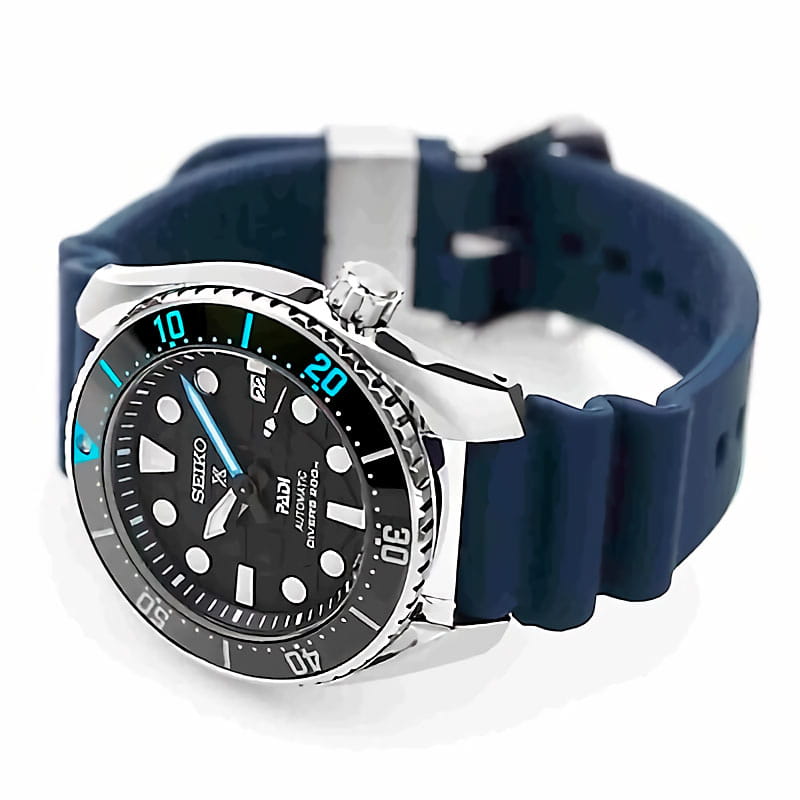 Seiko Prospex SPB325J1 — профессиональные дайверские часы, созданные с учётом строгих стандартов для подводных погружений. Крупный корпус диаметром 45 мм выполнен из нержавеющей стали с сатинированной и полированной обработкой, а массивный односторонний вращающийся безельБезельВнешний ободок, закрепляющий стекло. В спортивных часах так называется поворотное кольцо с делениями на циферблате, выполняет роль таймера – замеряет отрезки времени на шкале. Неподвижный безель – элемент декора. Однонаправленно вращающийся безель на дайверских часах позволяет фиксировать моменты погружения и выныривания на поверхность. с PVD-покрытиемPVDУльтратонкое покрытие наносится в технике вакуумного напыления, сочетает в себе нитрид титана особой прочности со слоем золота или оксида хрома. Несёт в себе декоративную или защитную функцию. с минутной шкалой облегчает контроль времени под водой. Защитную функцию выполняет сапфировое стеклоСапфировое стеклоПрочный и надёжный материал из кристалла сапфира синтетического происхождения, характеризующийся особой твёрдостью и устойчивостью к царапинам и повреждениям. с антибликовым покрытиемАнтибликовое покрытиеСлой оксида металла в 0,13-0,3 микрон, благодаря которому стекло часов не бликует и не отражает свет. Антибликовое покрытие уменьшает отражение света в 10 раз, обеспечивая отличную читаемость показателей циферблата., обеспечивающим высокую читаемость в любых условиях. Внутри установлен автоматический калибр 4R35 с возможностью ручного завода, стоп-секундой и запасом хода около 70 часа. Водозащита 200 м (20 бар) соответствует международному стандарту ISO для дайверских часов. Чёрный циферблат с крупными метками и стрелками покрыт люминесцентным покрытиемЛюминесцентное покрытиеПозволяет считывать показания времени в темноте. Производители наносят на стрелки, часовые индексы, безель или поверхность циферблата светонакопительный состав, дающий холодное свечение., что гарантирует видимость даже в кромешной темноте. Часы комплектуются прочным каучуковым ремешком с классической застёжкой, который устойчив к влаге и морской соли, делая модель надёжным инструментом для настоящего дайвинга.