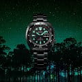 Стрелки и метки покрыты люминесцентным покрытиемЛюминесцентное покрытиеПозволяет считывать показания времени в темноте. Производители наносят на стрелки, часовые индексы, безель или поверхность циферблата светонакопительный состав, дающий холодное свечение., благодаря которому показания хорошо видны даже в темное время суток. Класс водозащиты — 200 метров, что дает возможность плавать, нырять и заниматься любыми водными активностями без опасений за сохранность часов.