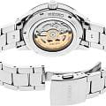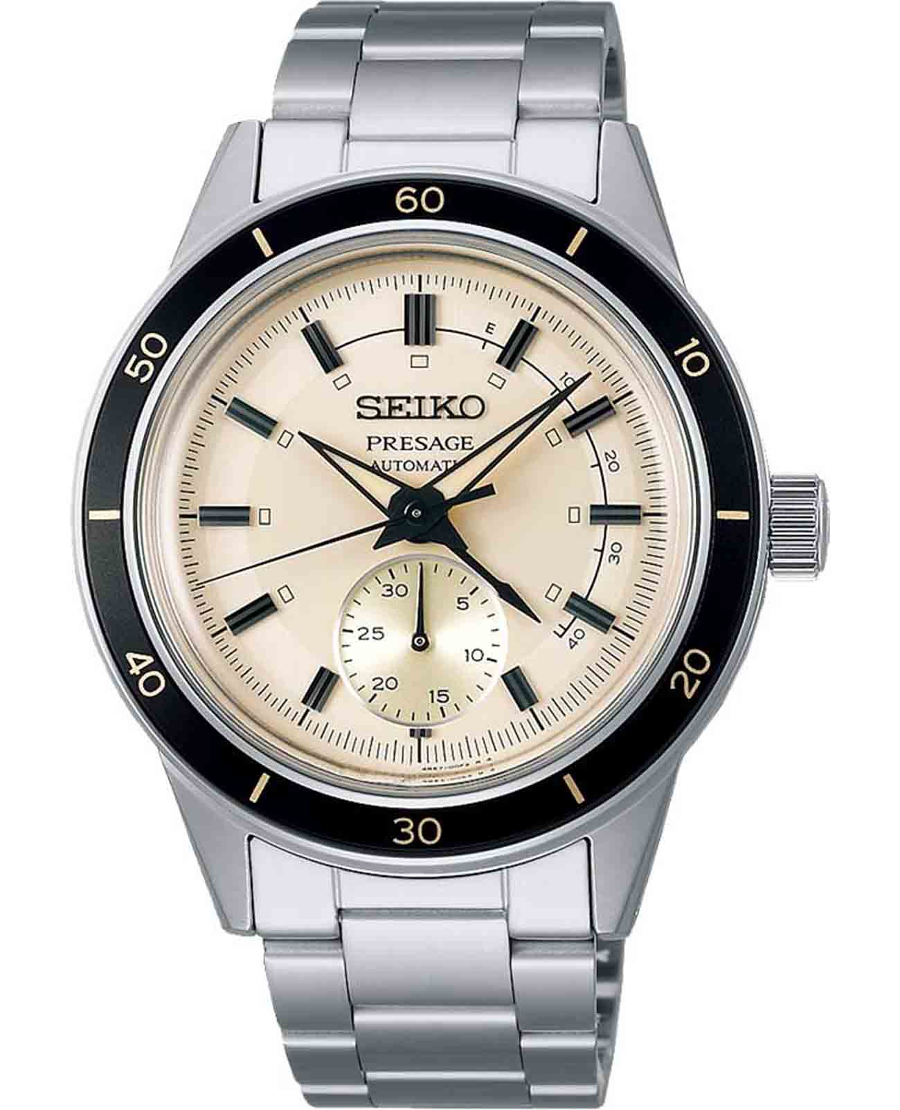 Модель Seiko SSA447J1 из коллекции Presage Style 60s — это утончённые автоматические часы с акцентом на винтажную эстетику и функциональность. Корпус диаметром 40,8 мм выполнен из нержавеющей стали, с комбинированной полировкой и прозрачной задней крышкой, через которую видно работу механизма. Водозащита составляет 50 метров. Чёрный алюминиевый безельБезельВнешний ободок, закрепляющий стекло. В спортивных часах так называется поворотное кольцо с делениями на циферблате, выполняет роль таймера – замеряет отрезки времени на шкале. Неподвижный безель – элемент декора. Однонаправленно вращающийся безель на дайверских часах позволяет фиксировать моменты погружения и выныривания на поверхность. с минутной шкалой подчёркивает стиль 60-х. Циферблат цвета слоновой кости выполнен с эффектом глубины и разделён на зоны. Центральное расположение имеет индикатор запаса ходаШагомерШагоме́р или педо́метр — измерительный прибор для подсчёта количества сделанных шагов (или пар шагов) при ходьбе или беге., а на 6 часах — стрелочный указатель даты. Часовые метки и стрелки покрыты люминесцентным покрытиемЛюминесцентное покрытиеПозволяет считывать показания времени в темноте. Производители наносят на стрелки, часовые индексы, безель или поверхность циферблата светонакопительный состав, дающий холодное свечение. LumiBrite, обеспечивающим читаемость в условиях недостаточного освещения. Циферблат защищён выпуклым стеклом Hardlex с «box-shaped» профилем, визуально отсылающим к ретро-дизайну. Внутри установлен калибр Seiko 4R57 с функцией ручного подзавода, остановкой секундной стрелки и запасом хода до 41 часа. Браслет из нержавеющей стали с надёжной раскладной застёжкойРаскладная застёжкаТакой тип застёжки используется только на браслетах из металла. Она никогда не раскрывается полностью, происходит разделение на 2 и более частей. Раскладывающая застёжка снизит вероятность потери часов к минимуму. с кнопками завершает образ модели. Seiko SSA447J1 — это удачное сочетание винтажного дизайна, современной механики и полезных функций в классическом и в то же время универсальном исполнении.
