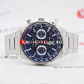 Мужские японские часы Seiko SSB407P1 c хронографомХронографФункция позволяет измерять отрезки времени с особой точностью: часы, минуты, секунды. Верным признаком хронографа является наличие на циферблате 3 дополнительных окошек-счётчиков., кварцевый механизм с высокой точностью. Минеральное стеклоМинеральное стеклоМинеральное стекло представляет собой искусственно выращенный минерал кварца. Такое стекло отличается особой устойчивостью к повреждениям и царапинам. Уступает по некоторым качествам сапфировому стеклу., устойчивое к появлению царапин, обладающее высокой прозрачностью. Класс водозащиты: 100 метров, позволит плавать, нырять и заниматься другими водными видами спорта. Корпус и браслет часов изготовлен из стали. Неподвижный безельБезельВнешний ободок, закрепляющий стекло. В спортивных часах так называется поворотное кольцо с делениями на циферблате, выполняет роль таймера – замеряет отрезки времени на шкале. Неподвижный безель – элемент декора. Однонаправленно вращающийся безель на дайверских часах позволяет фиксировать моменты погружения и выныривания на поверхность. со шкалой тахиметраТахиметрРазмеченная шкала, располагается на ободке или безеле часов. Тахиметр позволяет рассчитать скорость на определённом участке пути, расстояние измеряется в километрах или милях.. Стрелки и метки с люминесцентным покрытиемЛюминесцентное покрытиеПозволяет считывать показания времени в темноте. Производители наносят на стрелки, часовые индексы, безель или поверхность циферблата светонакопительный состав, дающий холодное свечение. LumiBrite. Браслет на раскладной застёжкеРаскладная застёжкаТакой тип застёжки используется только на браслетах из металла. Она никогда не раскрывается полностью, происходит разделение на 2 и более частей. Раскладывающая застёжка снизит вероятность потери часов к минимуму. с кнопками. СекундомерСекундомерСекундоме́р — прибор, способный измерять интервалы времени с точностью до долей секунды.. Окошко даты находится в положении между 4 и 5 часов.
