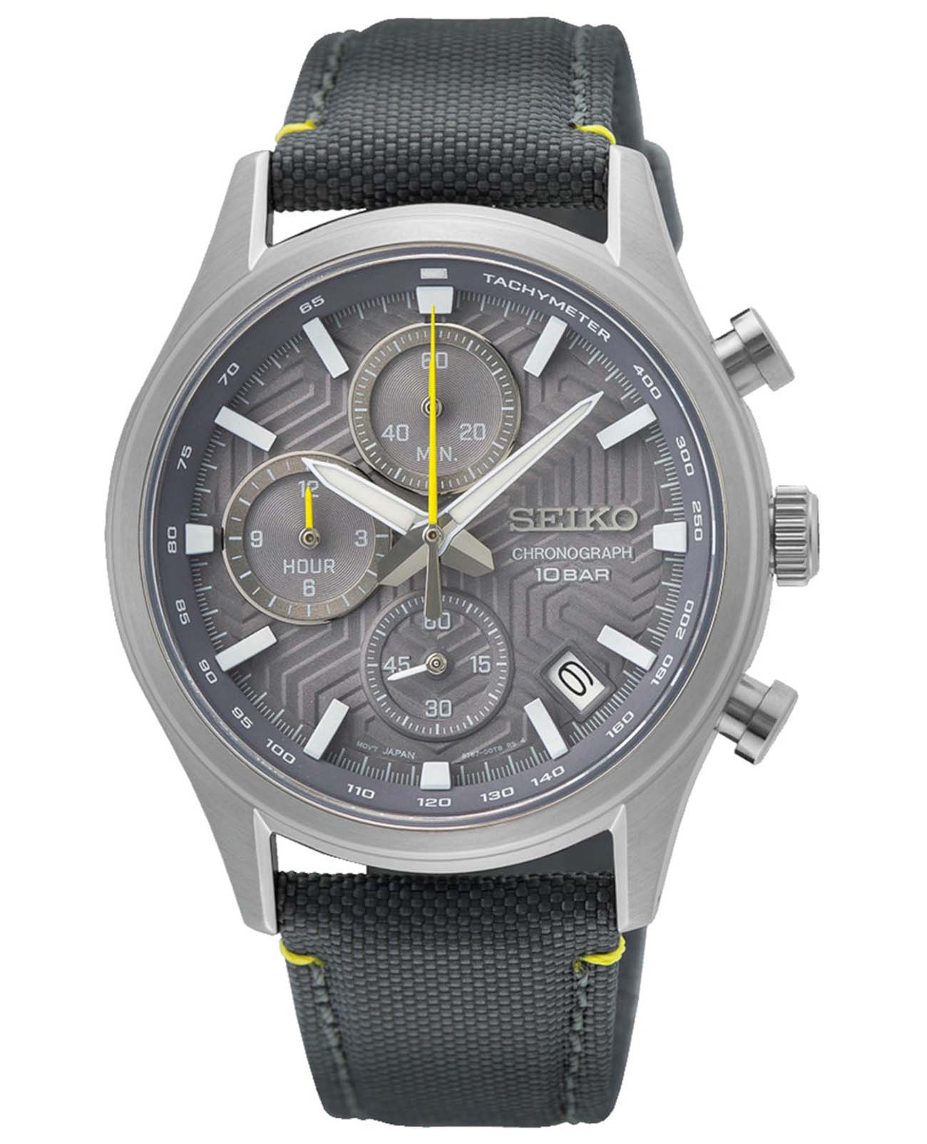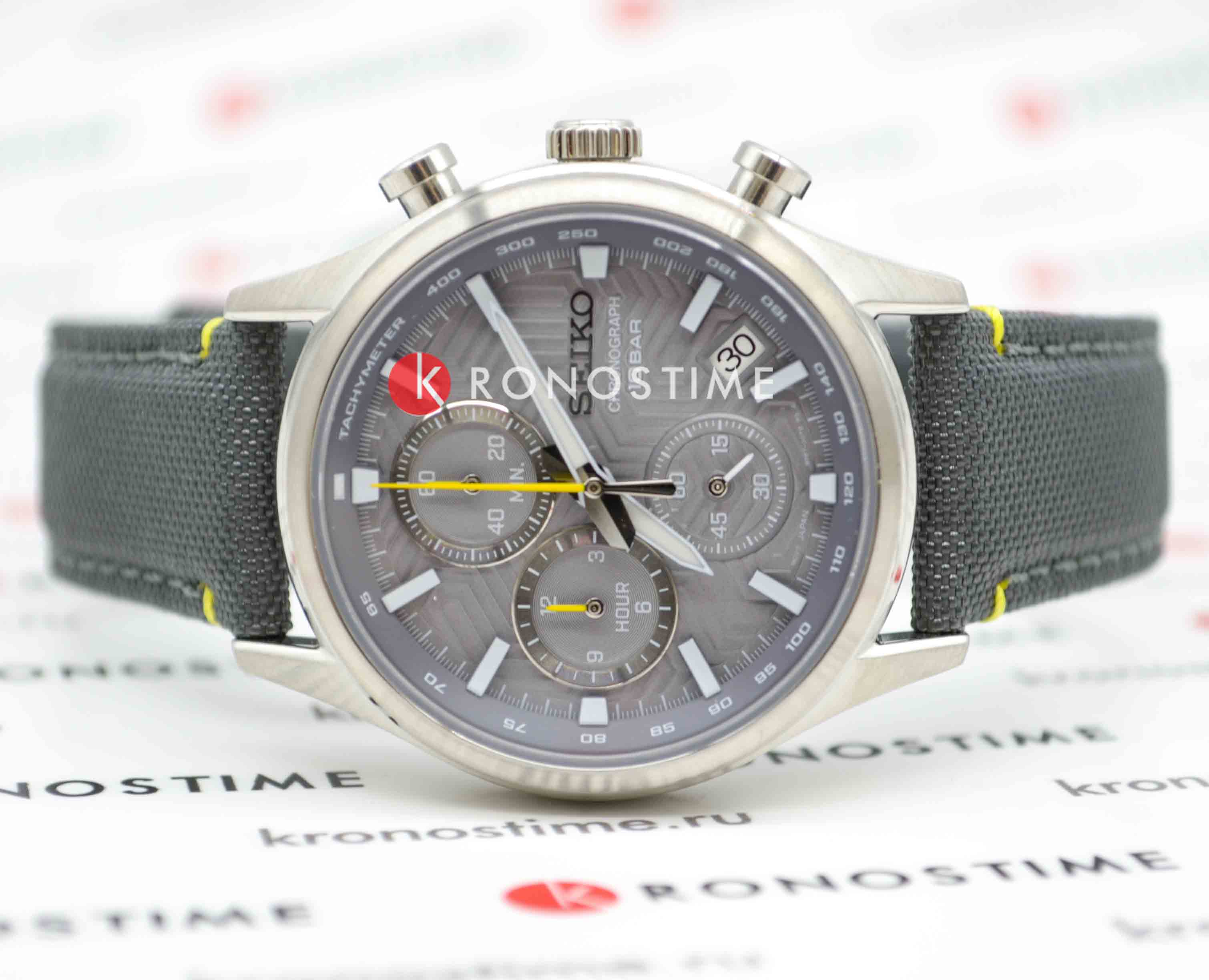 Мужские японские часы Seiko Conceptual Series Sports SSB423P1 c хронографомХронографФункция позволяет измерять отрезки времени с особой точностью: часы, минуты, секунды. Верным признаком хронографа является наличие на циферблате 3 дополнительных окошек-счётчиков., кварцевый механизм с высокой точностью. Сапфировое стеклоСапфировое стеклоПрочный и надёжный материал из кристалла сапфира синтетического происхождения, характеризующийся особой твёрдостью и устойчивостью к царапинам и повреждениям., устойчивое к появлению царапин, обладающее высокой прозрачностью. Класс водозащиты: 100 метров, позволит плавать, нырять и заниматься другими водными видами спорта. Корпус изготовлен из стали. Неподвижный безельБезельВнешний ободок, закрепляющий стекло. В спортивных часах так называется поворотное кольцо с делениями на циферблате, выполняет роль таймера – замеряет отрезки времени на шкале. Неподвижный безель – элемент декора. Однонаправленно вращающийся безель на дайверских часах позволяет фиксировать моменты погружения и выныривания на поверхность. со шкалой тахиметраТахиметрРазмеченная шкала, располагается на ободке или безеле часов. Тахиметр позволяет рассчитать скорость на определённом участке пути, расстояние измеряется в километрах или милях.. Стрелки и метки с люминесцентным покрытиемЛюминесцентное покрытиеПозволяет считывать показания времени в темноте. Производители наносят на стрелки, часовые индексы, безель или поверхность циферблата светонакопительный состав, дающий холодное свечение. LumiBrite. Нейлоновый ремешок с классической застежкой. СекундомерСекундомерСекундоме́р — прибор, способный измерять интервалы времени с точностью до долей секунды.. Окошко даты находится в положении между 4 и 5 часов.