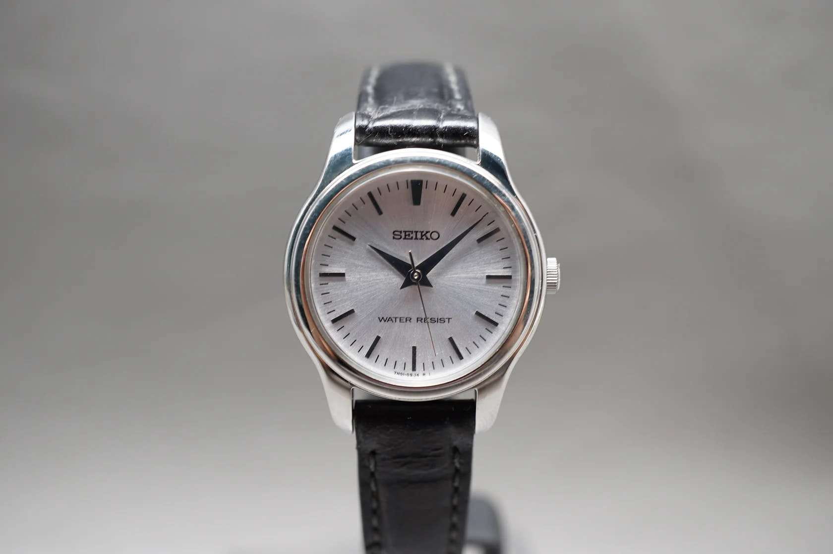 Женские кварцевые часы Seiko — это надёжный и универсальный аксессуар. Корпус диаметром 25,8 мм и толщиной 6,2 мм выполнен из нержавеющей стали. Циферблат серебристого цвета оформлен индексами и стрелками, включая центральную секундную стрелку. Циферблат защищён прочным закалённым минеральным стеклом Hardlex минеральным стекломМинеральное стеклоМинеральное стекло представляет собой искусственно выращенный минерал кварца. Такое стекло отличается особой устойчивостью к повреждениям и царапинам. Уступает по некоторым качествам сапфировому стеклу.. Механизм — японское кварцевое движение калибра 7N01 с высокой точностью хода (±10–15 сек. в месяц). Часы оснащены чёрным кожаным ремешком на классической пряжке. Водонепроницаемость 30 м позволяет использовать часы в повседневных условиях. Идеальный выбор для тех, кто ценит японское качество и классический дизайн.
