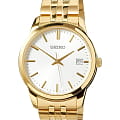 Мужские японские наручные часы Seiko Conceptual Series Dress SUR404P1, кварцевый механизм с высокой точностью. Минеральное стеклоМинеральное стеклоМинеральное стекло представляет собой искусственно выращенный минерал кварца. Такое стекло отличается особой устойчивостью к повреждениям и царапинам. Уступает по некоторым качествам сапфировому стеклу.. Класс водозащиты: 50 метров, позволит защитить корпус от случайных брызг или капель дождя. Корпус и браслет часов изготовлены из стали с PVD-покрытиемPVDУльтратонкое покрытие наносится в технике вакуумного напыления, сочетает в себе нитрид титана особой прочности со слоем золота или оксида хрома. Несёт в себе декоративную или защитную функцию.. Браслет на раскладной застёжкеРаскладная застёжкаТакой тип застёжки используется только на браслетах из металла. Она никогда не раскрывается полностью, происходит разделение на 2 и более частей. Раскладывающая застёжка снизит вероятность потери часов к минимуму. с кнопками. Окошко даты находится в положении 3 часа.