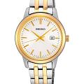 Женские японские часы Seiko Discover More SUR410P1 c кварцевым механизмом с высокой точностью с калибром 6N22. Минеральное стеклоМинеральное стеклоМинеральное стекло представляет собой искусственно выращенный минерал кварца. Такое стекло отличается особой устойчивостью к повреждениям и царапинам. Уступает по некоторым качествам сапфировому стеклу. с повышенной прочностью Hardlex устойчивое к появлению царапин, обладающее высокой прозрачностью. Водозащита до 5 ATM позволяет не снимать часы при дожде, мытье рук или случайных брызгах. Корпус диаметром 30 мм и браслет изготовлены из нержавеющей стали с PVDPVDУльтратонкое покрытие наносится в технике вакуумного напыления, сочетает в себе нитрид титана особой прочности со слоем золота или оксида хрома. Несёт в себе декоративную или защитную функцию. покрытием. Браслет с раскладной застёжкойРаскладная застёжкаТакой тип застёжки используется только на браслетах из металла. Она никогда не раскрывается полностью, происходит разделение на 2 и более частей. Раскладывающая застёжка снизит вероятность потери часов к минимуму. с фиксатором. Белый циферблат с метками в виде штрихов, окошко с датой находится в позиции 3 часов. Seiko — это гармония изящного дизайна и технологичной надёжности, компактный и стильный выбор для повседневной классики.