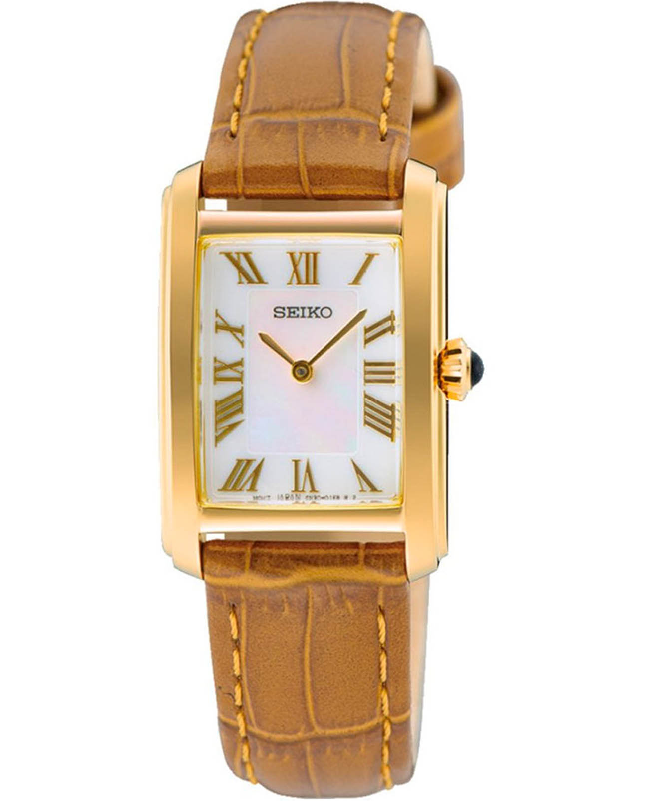 Женские японские часы Seiko Conceptual Series Dress SWR100P1 c кварцевым механизмом с высокой точностью с калибром 4N30. Минеральное стеклоМинеральное стеклоМинеральное стекло представляет собой искусственно выращенный минерал кварца. Такое стекло отличается особой устойчивостью к повреждениям и царапинам. Уступает по некоторым качествам сапфировому стеклу. с повышенной прочностью Hardlex устойчивое к появлению царапин, обладающее высокой прозрачностью. Водозащита до 5 ATM позволяет не снимать часы при дожде, мытье рук или случайных брызгах. Корпус изготовлен из стали с PVDPVDУльтратонкое покрытие наносится в технике вакуумного напыления, сочетает в себе нитрид титана особой прочности со слоем золота или оксида хрома. Несёт в себе декоративную или защитную функцию. покрытием, а ремень из кожи. Ремень со стандартной застежкой. Белый циферблат с метками в виде римских цифр. Seiko — это гармония изящного дизайна и технологичной надёжности, компактный и стильный выбор для повседневной классики.