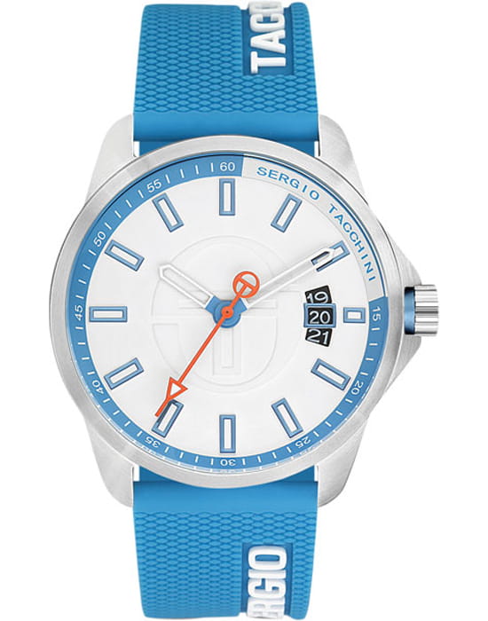 Sergio Tacchini ST.9.113.04 — спортивная мужская модель, воплощающая энергичный итальянский стиль бренда. Корпус из нержавеющей стали устойчив к случайным ударам и влаге, а эластичный каучуковый ремешок обеспечивает комфортную посадку на запястье даже при активном движении. Циферблат с крупными метками и секундной стрелкой ярко-оранжевого цвета создаёт динамичный акцент, усиливающий ощущение драйва. На отметке 6 часов расположен крупный двойной индикатор даты, повышающий читаемость. Циферблат защищён минеральным стекломМинеральное стеклоМинеральное стекло представляет собой искусственно выращенный минерал кварца. Такое стекло отличается особой устойчивостью к повреждениям и царапинам. Уступает по некоторым качествам сапфировому стеклу., устойчивым к царапинам и лёгким повреждениям. Водозащита уровня 50 м позволяет не снимать часы во время душа или дождя. Универсальный и выразительный аксессуар для повседневного ритма, сочетающий надёжность, удобство и фирменную итальянскую эстетику Sergio Tacchini.