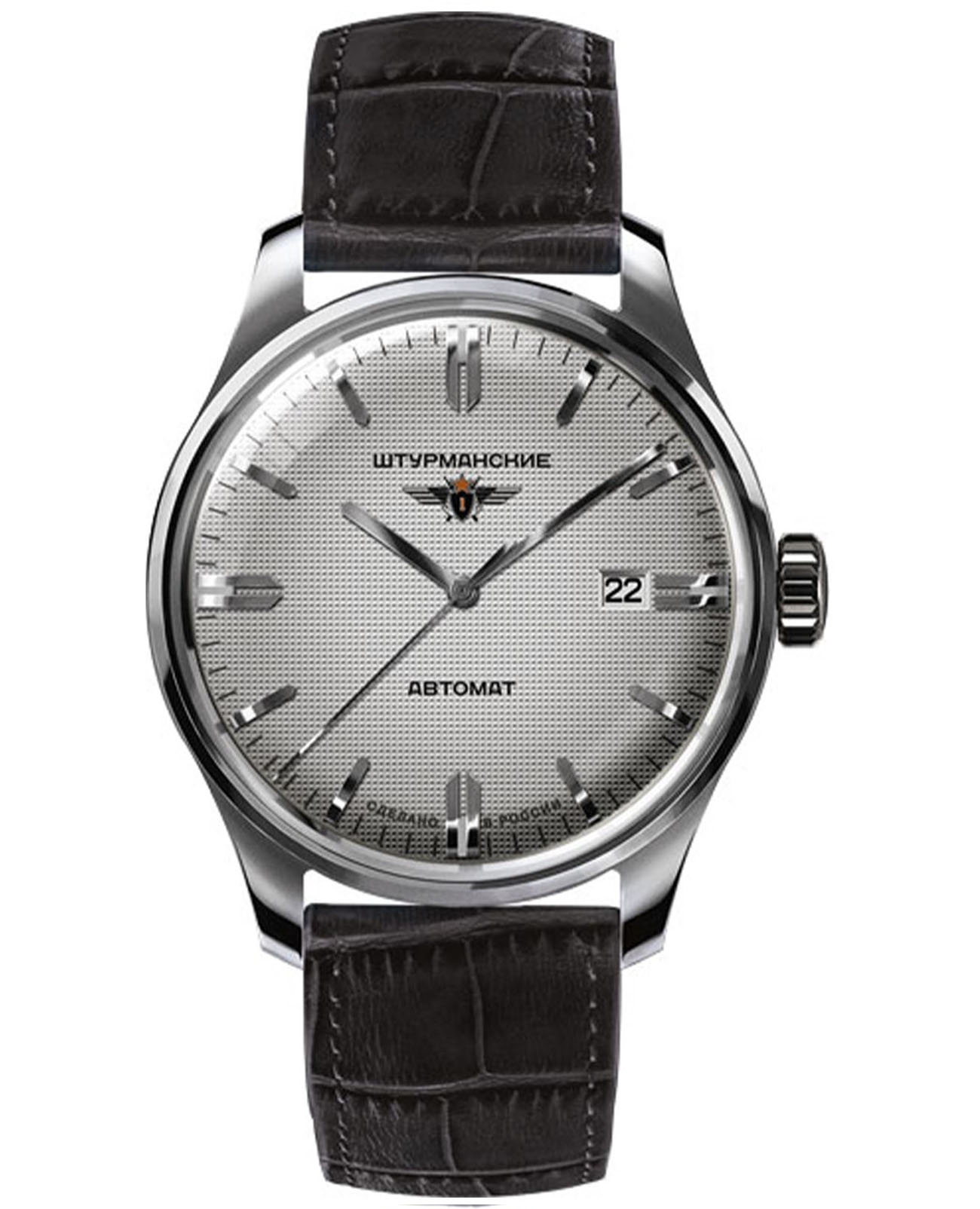 Мужские российские механические часы с минеральным стекломМинеральное стеклоМинеральное стекло представляет собой искусственно выращенный минерал кварца. Такое стекло отличается особой устойчивостью к повреждениям и царапинам. Уступает по некоторым качествам сапфировому стеклу. Штурманские Гагарин 9015/1271574, механизм с высокой точностью. Класс водозащиты: 50 метров, позволит защитить корпус от случайных брызг или капель дождя. Корпус часов изготовлен из стали. Кожаный ремешок на стандартной застёжке. Стрелки и метки с люминесцентным покрытиемЛюминесцентное покрытиеПозволяет считывать показания времени в темноте. Производители наносят на стрелки, часовые индексы, безель или поверхность циферблата светонакопительный состав, дающий холодное свечение.. Калибр Miyota 9015. В механизме 24 камня, частота 28800 полуколебаний в час. Запас хода 42 часа. Апертура даты.
