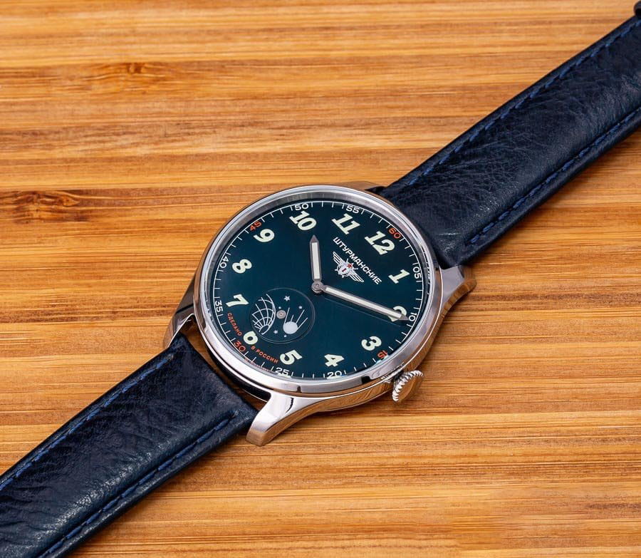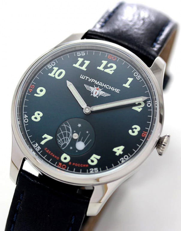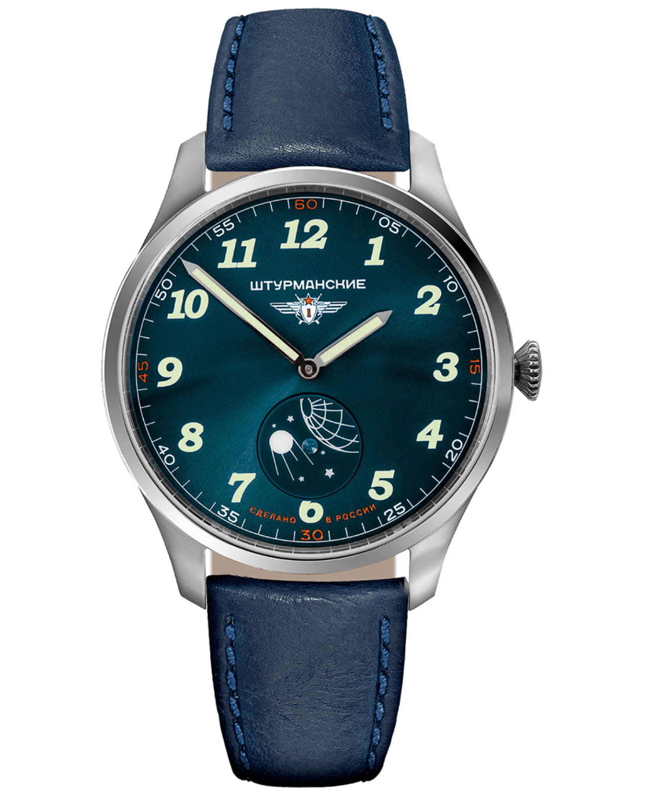 Штурманские мужские российские кварцевые часы с минеральным стекломМинеральное стеклоМинеральное стекло представляет собой искусственно выращенный минерал кварца. Такое стекло отличается особой устойчивостью к повреждениям и царапинам. Уступает по некоторым качествам сапфировому стеклу. Штурманские Наследие Спутник Малая Секунда VD78/6811421, кварцевый механизм с высокой точностью. Класс водозащиты: 50 метров, позволит защитить корпус от случайных брызг или капель дождя. Корпус часов изготовлен из стали. Кожаный ремешок на стандартной застёжке. Стрелки и метки с люминесцентным покрытиемЛюминесцентное покрытиеПозволяет считывать показания времени в темноте. Производители наносят на стрелки, часовые индексы, безель или поверхность циферблата светонакопительный состав, дающий холодное свечение.. Надежный кварцевый механизм VD78 Seiko работает практически без погрешностей (до 10-20 секунд в месяц) и редко требует замены батареи.