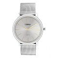 Класс водозащиты часов составляет 30 метров, что позволяет защитить корпус от случайных брызг и капель дождя.Стальной браслет миланского плетения на раскладном замкеРаскладной замокДанный вариант застежки используется только на часах с металлическим браслетом. Отличительная особенность такого крепления в том, что длина браслета становится универсальной и вы можете самостоятельно отрегулировать нужный вам размер – застежка просто двигается по браслету часов.. Эти часы идеально подойдут для повседневного использования, сочетая в себе стиль, надежность и функциональность.