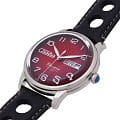 Часы Слава Юбилейные 2600675/300-2427 представляют собой воплощение российского часового искусства, сочетая в себе традиции и современные технологии. Эти механические часы с автоподзаводом оснащены калибром «Слава 2427», который обеспечивает надежную и точную работу. Корпус из высококачественной стали диаметром 44 мм и толщиной 14,5 мм придает часам солидность и долговечность. Циферблат выполнен в благородном красном цвете и оформлен арабскими цифрами, обеспечивая удобство чтения времени. Прочное выпуклое сапфировое стеклоСапфировое стеклоПрочный и надёжный материал из кристалла сапфира синтетического происхождения, характеризующийся особой твёрдостью и устойчивостью к царапинам и повреждениям. защищает циферблат от царапин и повреждений. Особенностью модели является наличие календаря, отображающего число и день недели в положении 3 часа. Стрелки с люминесцентным покрытиемЛюминесцентное покрытиеПозволяет считывать показания времени в темноте. Производители наносят на стрелки, часовые индексы, безель или поверхность циферблата светонакопительный состав, дающий холодное свечение., что облегчает чтение времени даже в условиях слабого освещения. Часы обладают водозащитой уровня 100WR, что делает их подходящими для повседневного ношения и активного образа жизни. Кожаный ремешок с классической застежкой добавляет модели изысканности и комфорта в носке. Эта модель представлена в лимитированной серии из 300 экземпляров, что делает её не только надежным функциональным аксессуаром, но и ценным предметом для коллекционеров. Прозрачная задняя крышка позволяет наблюдать за работой механизма, который включает в себя 25 камней и имеет частоту 18000 полуколебаний в час. Запас хода составляет до 40 часов, а противоударное устройство оси баланса обеспечивает дополнительную надежность.