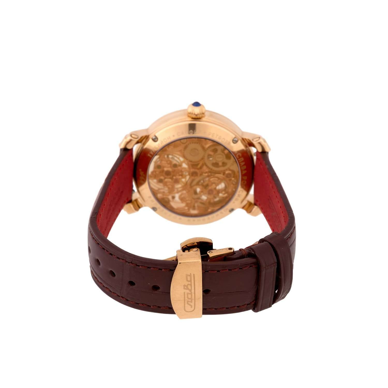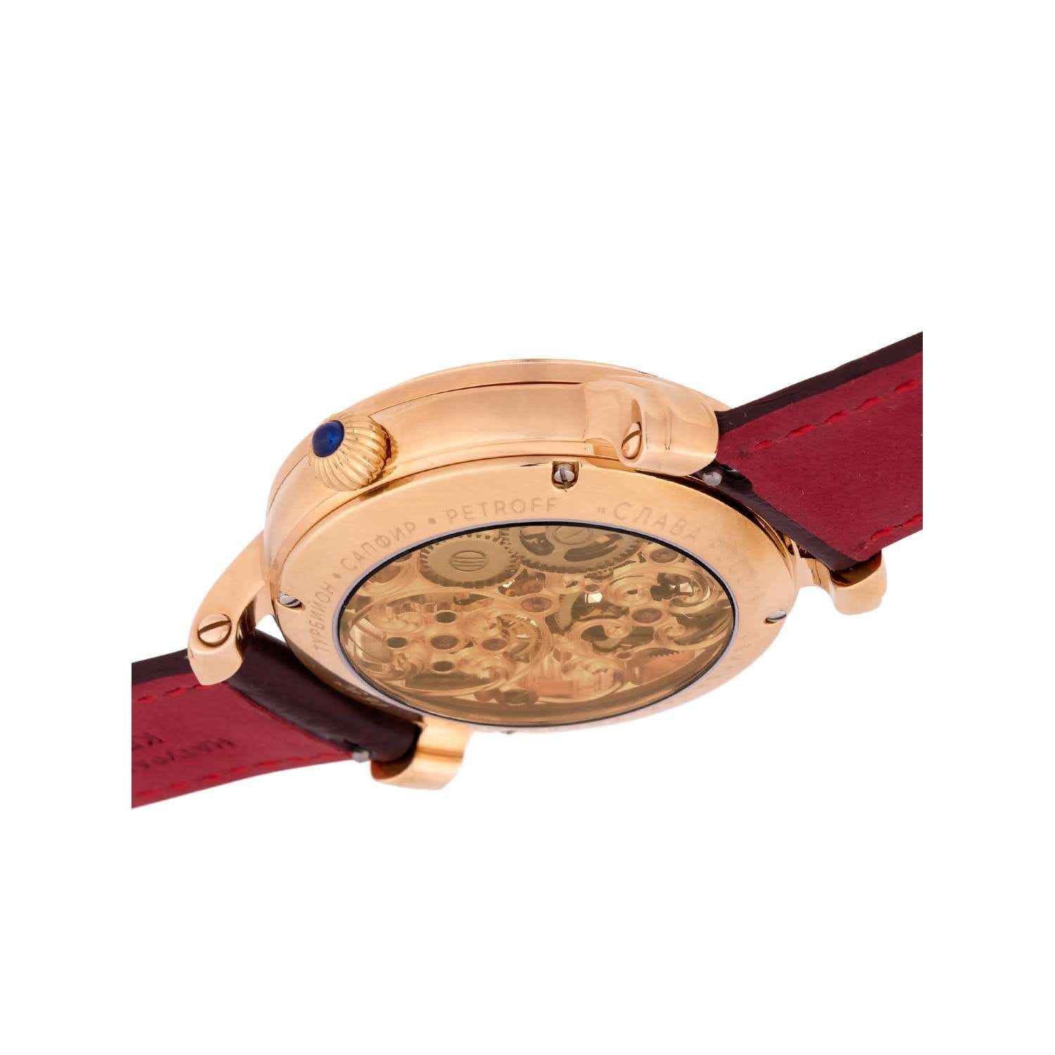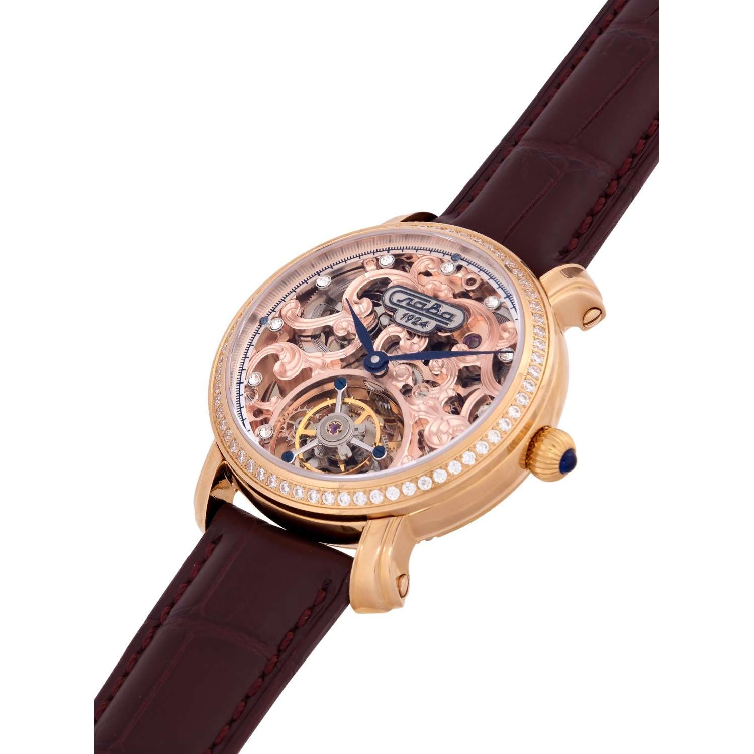 Наручные часы Слава Слава России 7463619/300-3451Р-68 — воплощение классического стиля и исключительного качества, произведенные в России. Эта модель из лимитированной коллекции станет великолепным дополнением к вашему образу. Часы оснащены надежным механическим механизмом Hangzhou SL3451 с автоподзаводом, обеспечивающим точный ход и оснащены скелетоном, позволяющим любоваться механизмом. Корпус из нержавеющей стали с PVDPVDУльтратонкое покрытие наносится в технике вакуумного напыления, сочетает в себе нитрид титана особой прочности со слоем золота или оксида хрома. Несёт в себе декоративную или защитную функцию. покрытием оттенка розового золота диаметром 41 мм и толщиной 14,2 мм отличается высокой прочностью и водозащитой до 5 ATM. БезельБезельВнешний ободок, закрепляющий стекло. В спортивных часах так называется поворотное кольцо с делениями на циферблате, выполняет роль таймера – замеряет отрезки времени на шкале. Неподвижный безель – элемент декора. Однонаправленно вращающийся безель на дайверских часах позволяет фиксировать моменты погружения и выныривания на поверхность. часов с вставками из камней циркона. Золотистый циферблат с открытым механизмом защищен сапфировым стекломСапфировое стеклоПрочный и надёжный материал из кристалла сапфира синтетического происхождения, характеризующийся особой твёрдостью и устойчивостью к царапинам и повреждениям., устойчивым к царапинам, что позволяет надолго сохранить безупречный вид часов. Кожаный ремень из крокодила с застежкой «бабочка»Застёжка "бабочка"Такой вид застёжки дополняется предохранителями, помогающими избежать случайного раскрытия браслета. Обладают изящным исполнением. добавляет элегантности и комфорта, создавая ощущение роскоши и изысканности. Эта модель станет идеальным выбором для тех, кто ценит традиции и высокое качество в сочетании с современным дизайном.