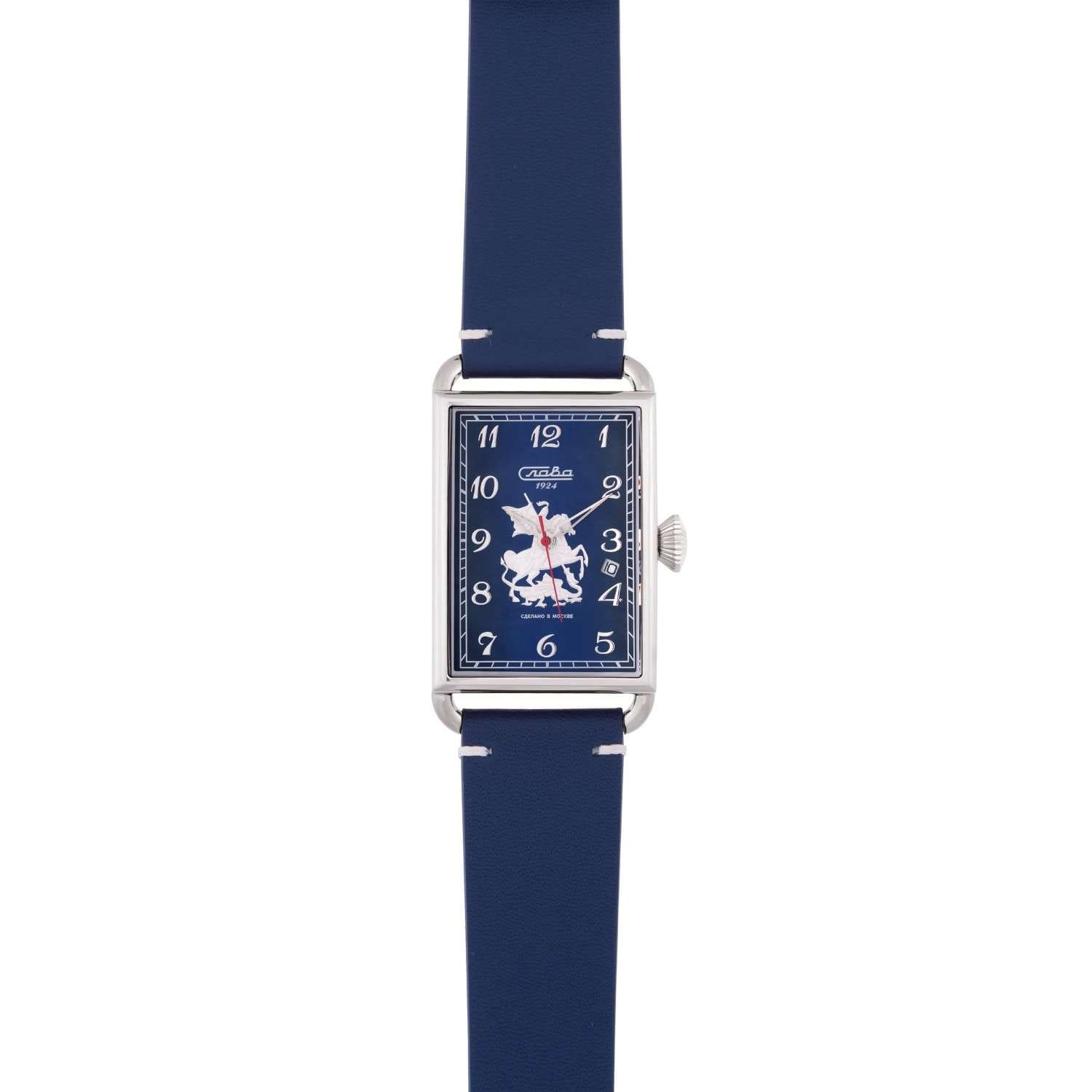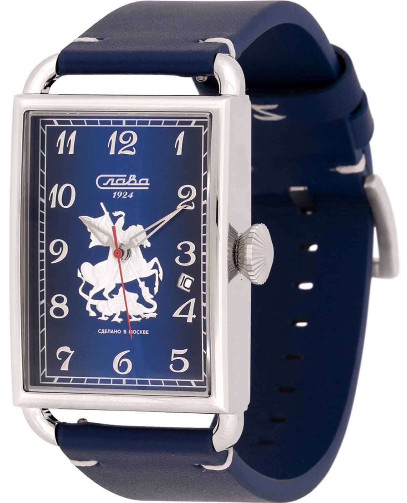 Часы Слава Москва 8700784/300-2414 — это воплощение элегантности и стиля, которое станет идеальным дополнением к вашему деловому гардеробу. Созданные в России, они оснащены надежным механическим механизмом калибра Слава 2414. Корпус выполнен из высококачественной стали, что обеспечивает долговечность и изысканный внешний вид. Синий циферблат украшен изображением Георгия Победоносца и защищен прочным сапфировым стекломСапфировое стеклоПрочный и надёжный материал из кристалла сапфира синтетического происхождения, характеризующийся особой твёрдостью и устойчивостью к царапинам и повреждениям., которое устойчиво к царапинам. Арабские цифры и окошко даты, расположенное между отметками 3 и 4 часа, добавляют функциональности и удобства в использовании. Задняя крышка, крепящаяся на 4 винтах, украшена надписью «Москва», подчеркивая уникальность и оригинальность модели. Кожаный ремешок с классической застежкой и системой быстрой замены не только обеспечивает комфорт, но и позволяет легко менять его по вашему желанию. Часы обладают водозащитой 50WR, что делает их подходящими для ежедневного ношения. Компактные габариты и вес в 70 грамм делают их удобными и практически незаметными на запястье. Эта лимитированная серия выпущена в количестве всего 500 экземпляров, что придает особую ценность и эксклюзивность вашему выбору. Часы поставляются в стильной подарочной упаковке, что делает их отличным подарком для ценителей высокого качества и утонченного дизайна.