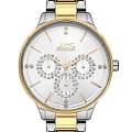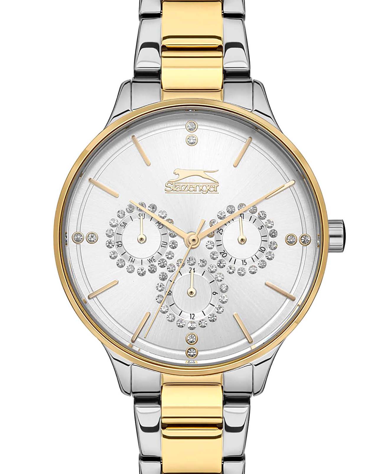 Женские наручные часы Slazenger SL.09.2019.4.02 сочетают в себе элегантный дизайн и функциональность. Модель обладает круглым корпусом диаметром 36 мм, изготовленным из суперметалла, что обеспечивает высокую устойчивость к внешним воздействиям. Браслет выполнен из того же материала с частичным IP-покрытиемIP-покрытиеМетод ионного напыления. Демонстрирует повышенную устойчивость к истиранию, окислению и химическим веществам. Под воздействием высокого давления и температуры около 1500°C молекулы металла надёжно соединяются с частицами корпуса часов. и оснащен раскладной застежкойРаскладной замокДанный вариант застежки используется только на часах с металлическим браслетом. Отличительная особенность такого крепления в том, что длина браслета становится универсальной и вы можете самостоятельно отрегулировать нужный вам размер – застежка просто двигается по браслету часов., гарантирующей комфортное ношение и безопасность. Серебристый циферблат украшен малыми циферблатами, которые отображают дату, день недели и текущее время в 24-часовом формате. Для защиты используется минеральное стеклоМинеральное стеклоМинеральное стекло представляет собой искусственно выращенный минерал кварца. Такое стекло отличается особой устойчивостью к повреждениям и царапинам. Уступает по некоторым качествам сапфировому стеклу., обеспечивающее прочную защиту от царапин. Часы работают на кварцевом механизме, что гарантирует точное время без необходимости подзаводки. Водонепроницаемость достигает 3 атмосфер (WR30), что позволяет использовать их при контакте с брызгами воды, однако не рекомендуется для плавания или дайвинга.