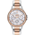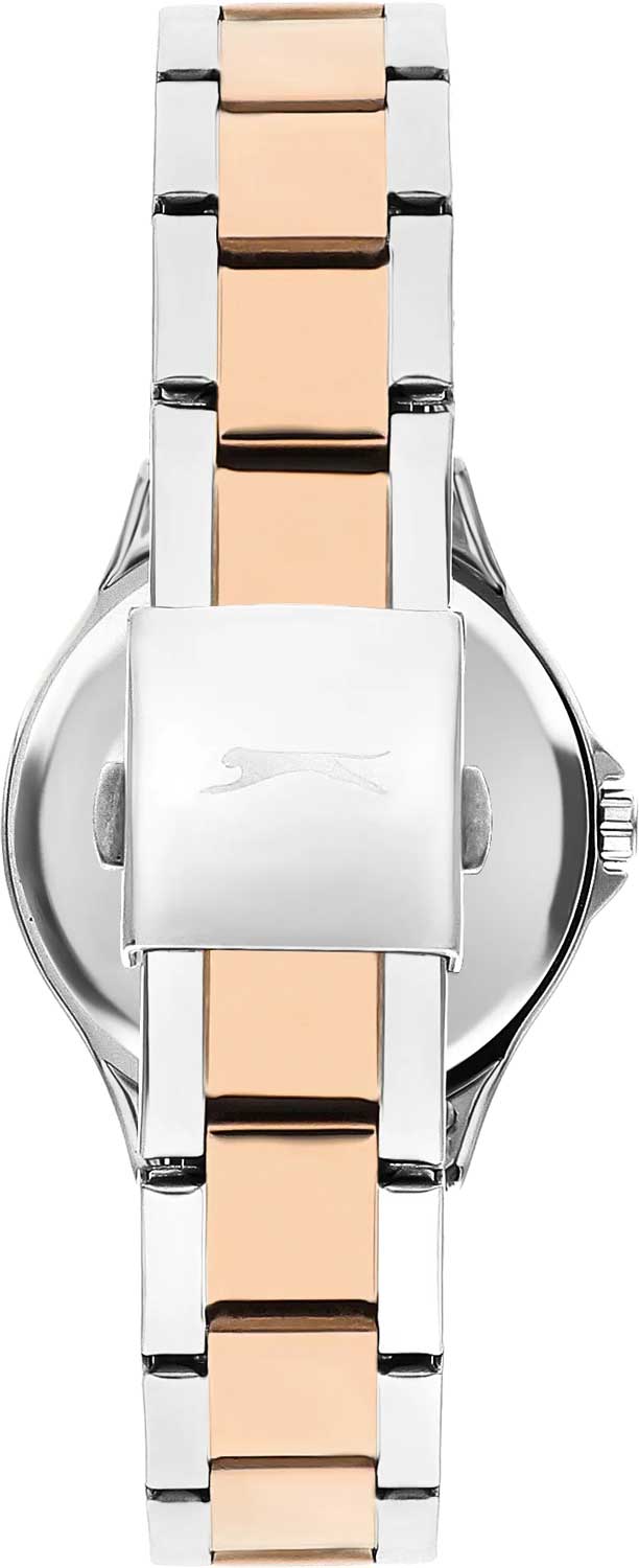 Slazenger SL.09.2021.4.03 – элегантные женские часы, сочетающие стильный дизайн и функциональность. Корпус выполнен из суперметалла, придающим модели роскошный внешний вид. Перламутровый циферблат добавляет изысканности, и защищён минеральным стекломМинеральное стеклоМинеральное стекло представляет собой искусственно выращенный минерал кварца. Такое стекло отличается особой устойчивостью к повреждениям и царапинам. Уступает по некоторым качествам сапфировому стеклу., устойчивым к царапинам. БезельБезельВнешний ободок, закрепляющий стекло. В спортивных часах так называется поворотное кольцо с делениями на циферблате, выполняет роль таймера – замеряет отрезки времени на шкале. Неподвижный безель – элемент декора. Однонаправленно вращающийся безель на дайверских часах позволяет фиксировать моменты погружения и выныривания на поверхность. с PVD-покрытиемPVDУльтратонкое покрытие наносится в технике вакуумного напыления, сочетает в себе нитрид титана особой прочности со слоем золота или оксида хрома. Несёт в себе декоративную или защитную функцию. украшен кристаллами. Часы оснащены точным кварцевым механизмом, обеспечивающим надёжное и стабильное отображение времени. Дополнительные функции включают индикацию дня недели и даты, что повышает практичность использования. Браслет из суперметалла с PVD-покрытиемPVDУльтратонкое покрытие наносится в технике вакуумного напыления, сочетает в себе нитрид титана особой прочности со слоем золота или оксида хрома. Несёт в себе декоративную или защитную функцию. оснащён раскладной застёжкойРаскладная застёжкаТакой тип застёжки используется только на браслетах из металла. Она никогда не раскрывается полностью, происходит разделение на 2 и более частей. Раскладывающая застёжка снизит вероятность потери часов к минимуму., обеспечивающей комфортное ношение и надёжную фиксацию на запястье. Водозащита до 30 метров (3 ATM) защищает часы от случайных брызг и дождя, делая их подходящими для повседневного использования.