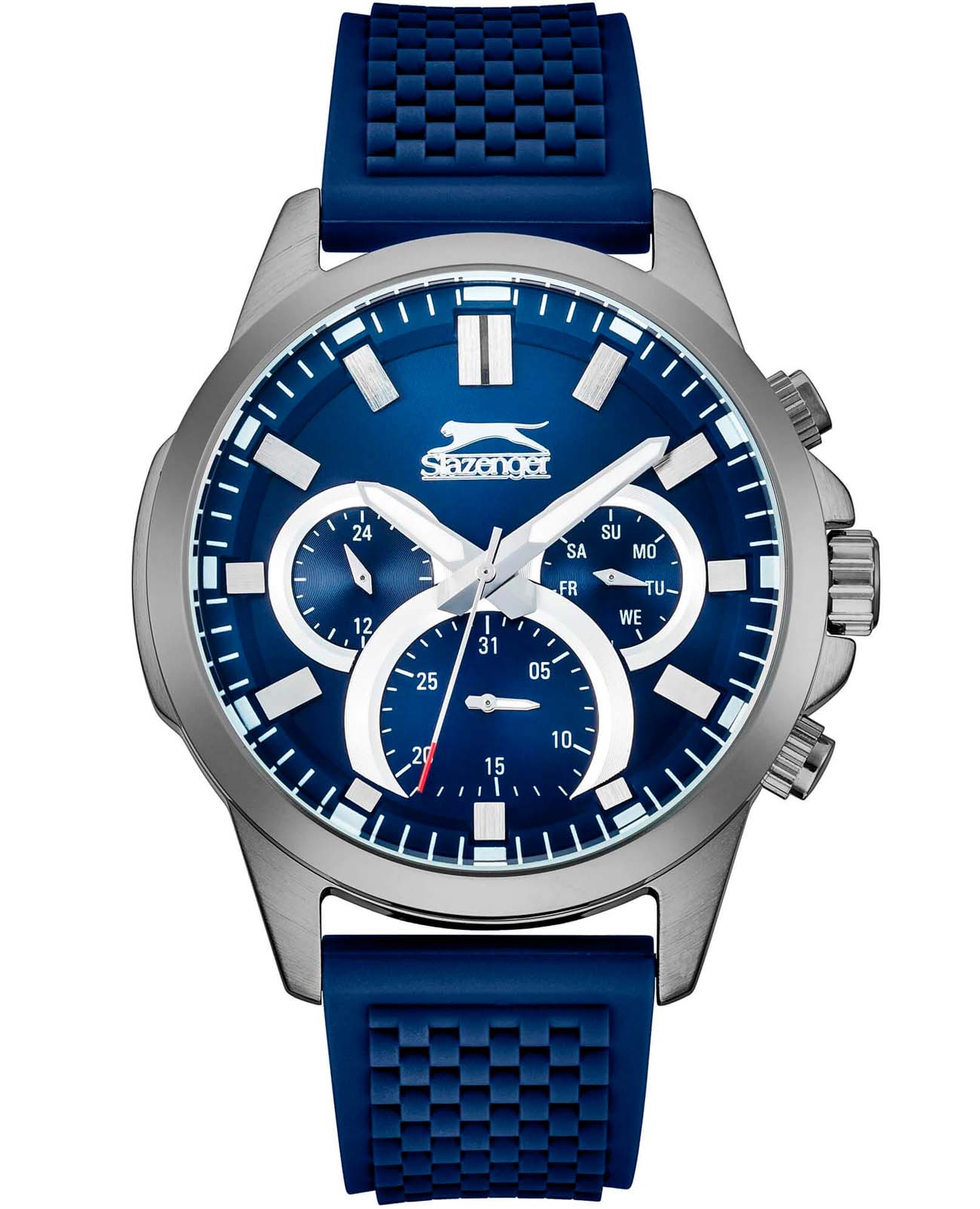 Мужские наручные часы Slazenger SL.09.2083.2.04 сочетают в себе современный дизайн и функциональность. Модель обладает круглым корпусом диаметром 45 мм, изготовленным из суперметалла, что обеспечивает высокую устойчивость к внешним воздействиям. Браслет выполнен из синего силикона шириной 2.2 см с классической застежкой, гарантирующей комфортное ношение и безопасность. Синий циферблат оснащен малыми циферблатами для отображения даты, дня недели и текущего времени в 24-х часовом формате второй часовой поясВторой часовой поясФункция, позволяющая отображать время двух часовых поясов одновременно.. Для защиты используется минеральное стеклоМинеральное стеклоМинеральное стекло представляет собой искусственно выращенный минерал кварца. Такое стекло отличается особой устойчивостью к повреждениям и царапинам. Уступает по некоторым качествам сапфировому стеклу., обеспечивающее прочную защиту от царапин. Стрелки имеют люминесцентное покрытие люминесцентное покрытиеЛюминесцентное покрытиеПозволяет считывать показания времени в темноте. Производители наносят на стрелки, часовые индексы, безель или поверхность циферблата светонакопительный состав, дающий холодное свечение., облегчающее чтение времени в темноте. Часы работают на кварцевом механизме, что гарантирует точное время без необходимости подзаводки. Модель также имеет класс водонепроницаемости WR50 (5 атм), что позволяет использовать их во время плавания без ныряния. Толщина корпуса составляет 12 мм, делая эти часы подходящими для повседневного использования благодаря своему стильному дизайну и надёжности материалов.
